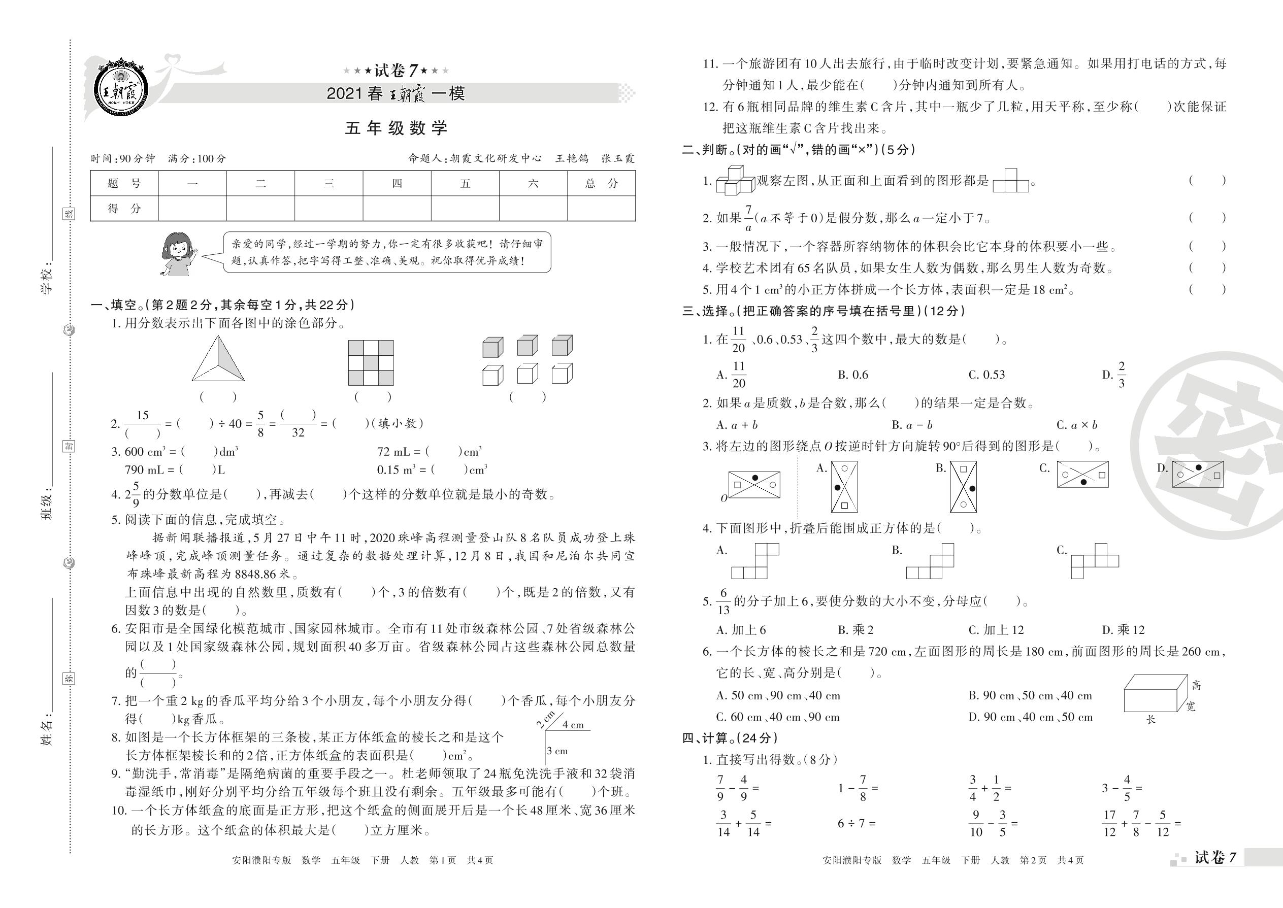 王朝霞期末模拟卷五年级下册数学(人教版)_R210804162219【7】