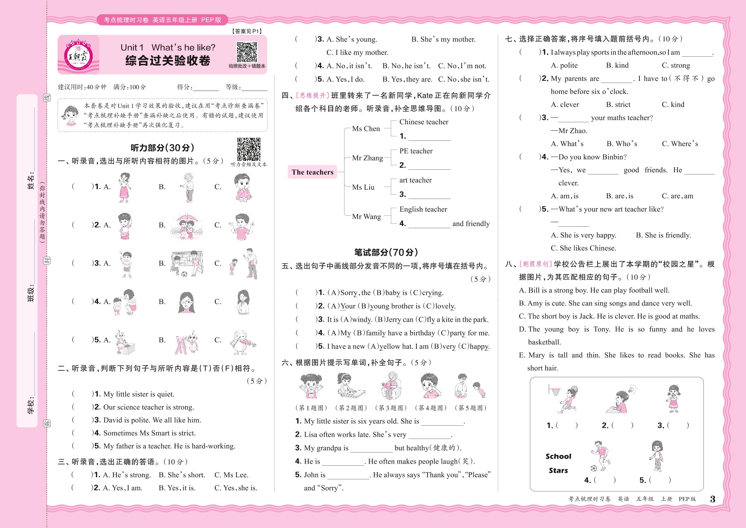 2024秋上册五年级英语人教PEP版(三起始) Unit 1 综合过关验收卷