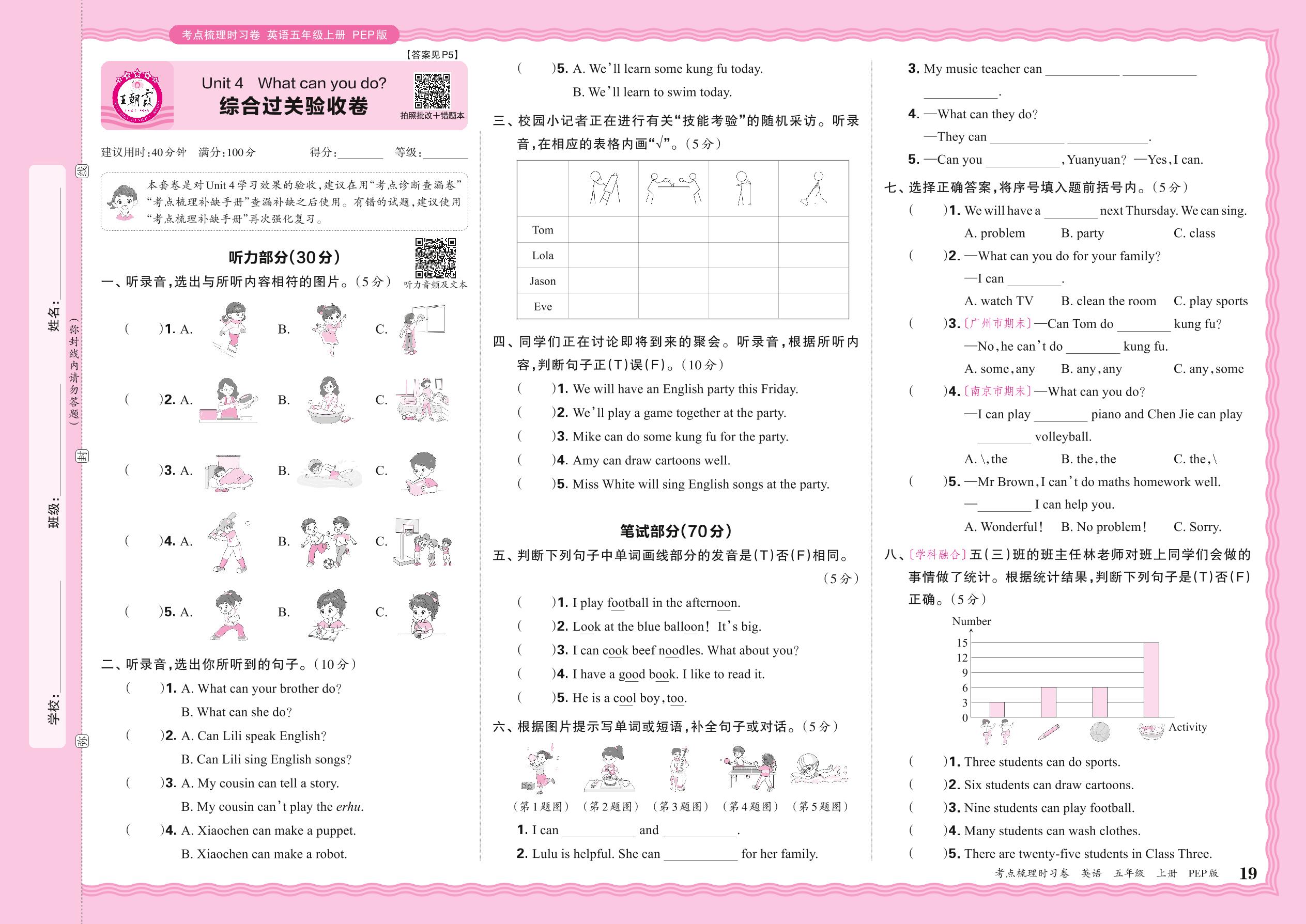 2024秋上册五年级英语人教PEP版(三起始) Unit 4 综合过关验收卷