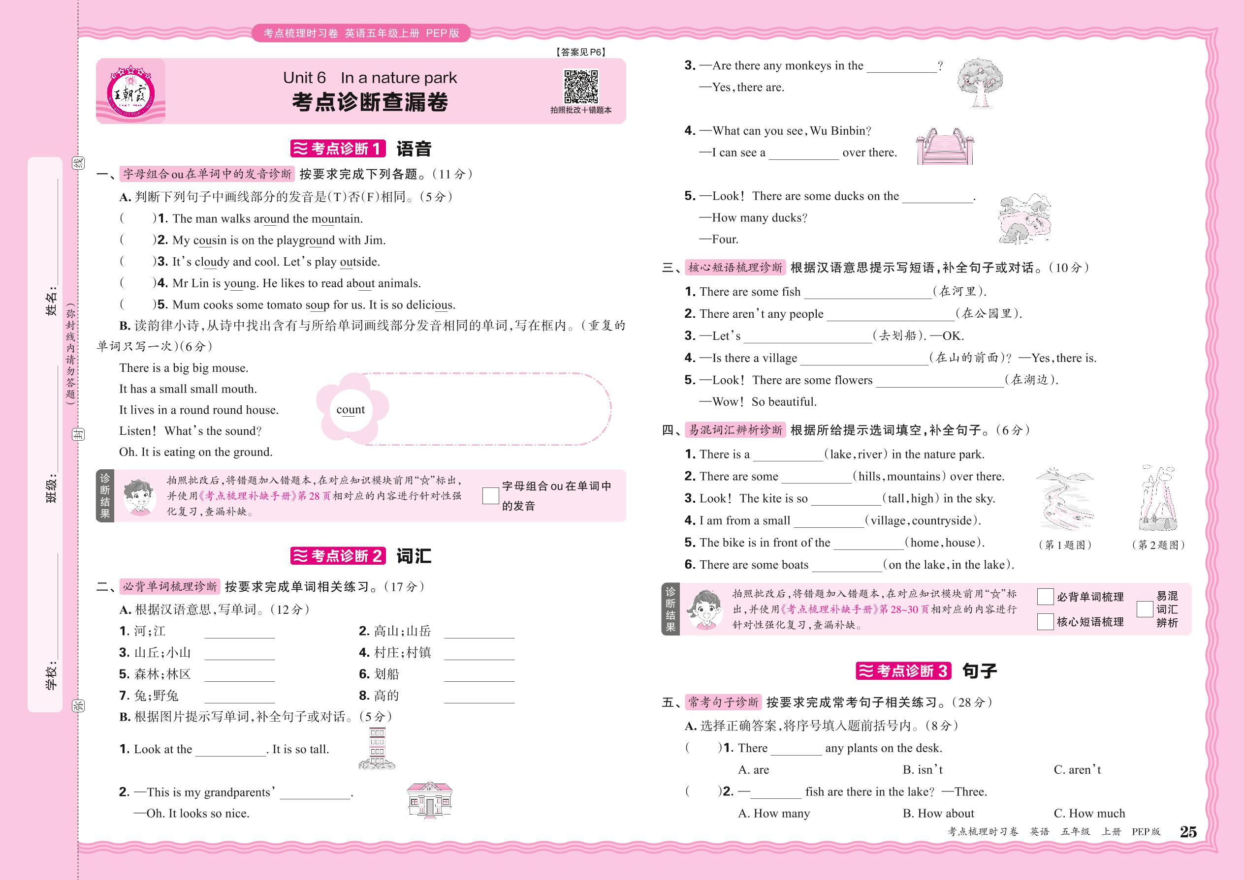 2024秋上册五年级英语人教PEP版(三起始) Unit 6 考点诊断查漏卷
