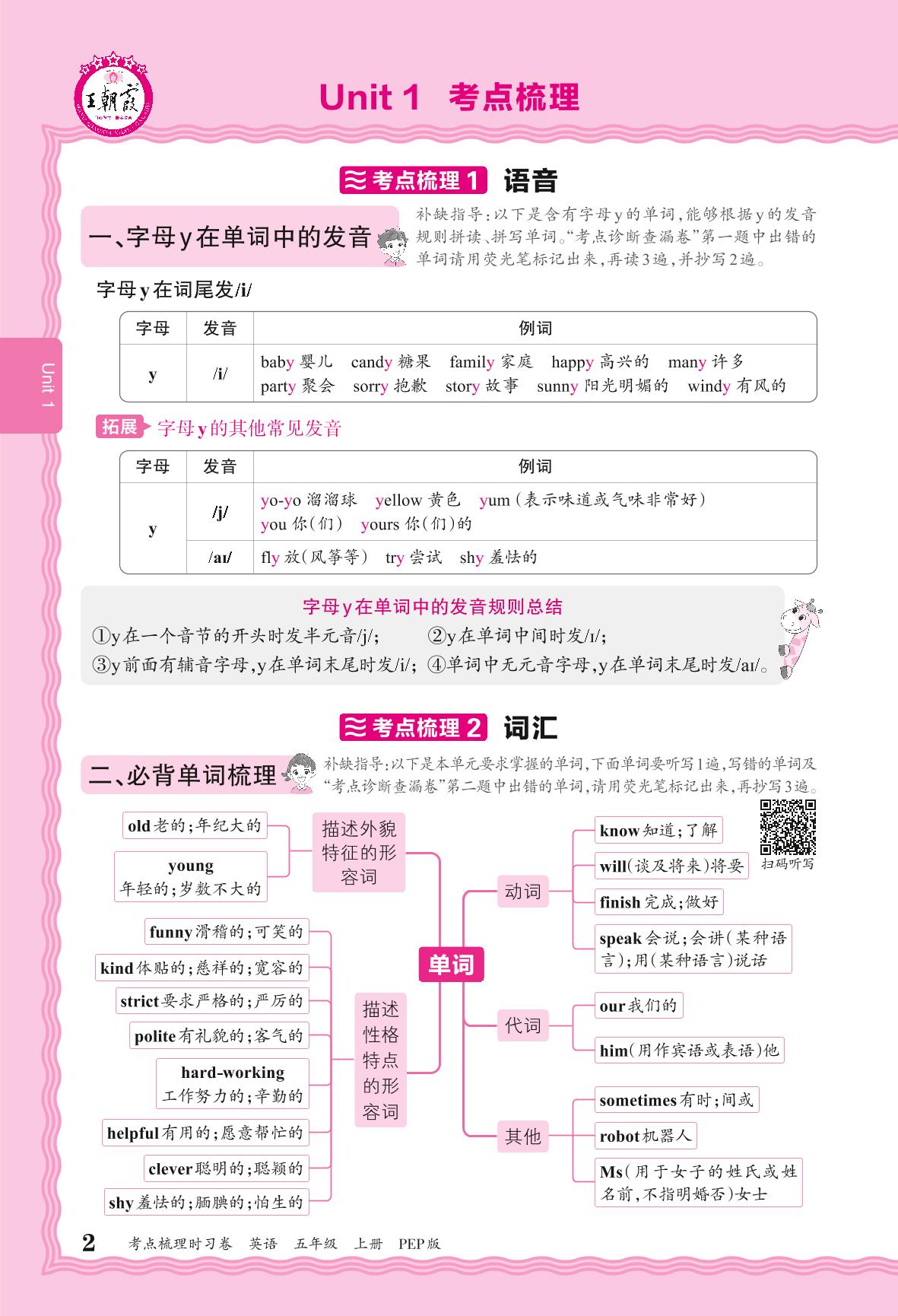 2024秋上册五年级英语人教PEP版(三起始) 考点梳理补缺手册——Unit 1 What's he like?
