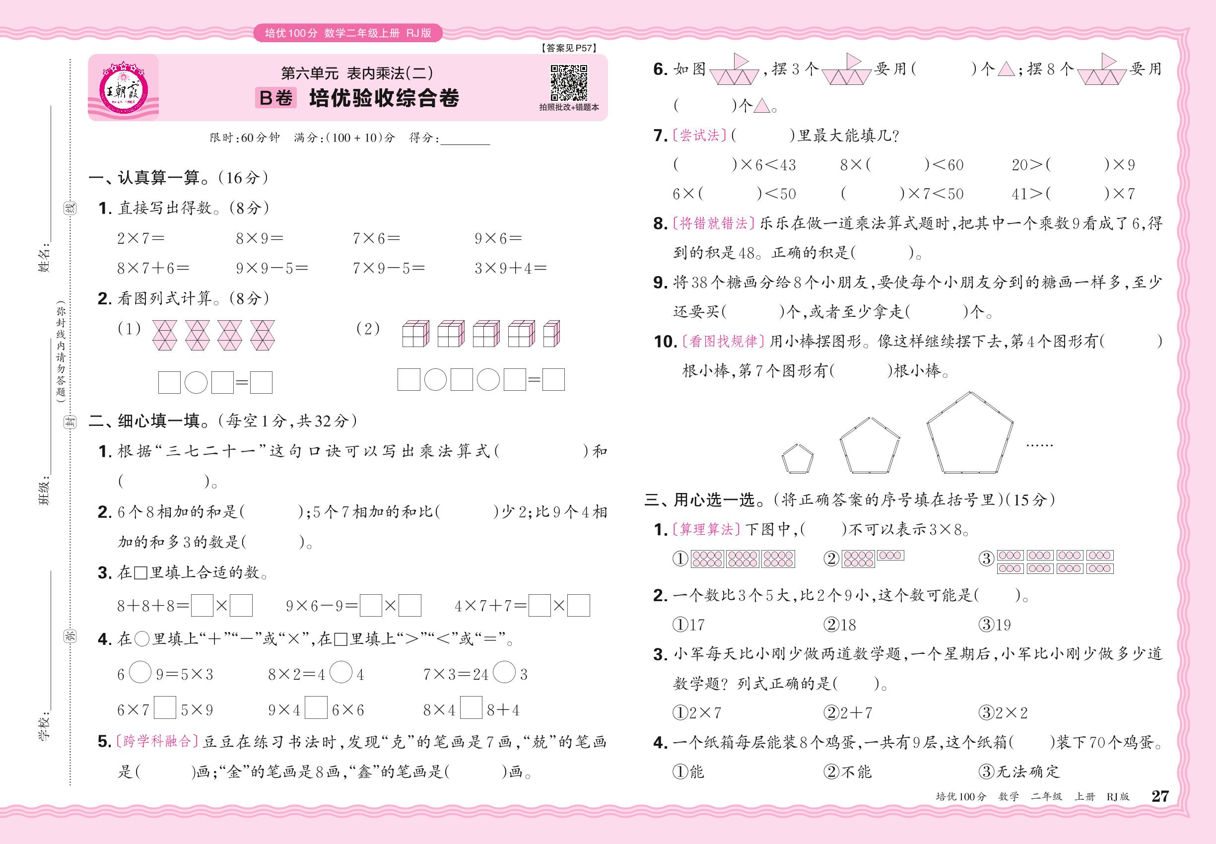 2024秋上册二年级数学人教版 第六单元B卷 培优验收综合卷