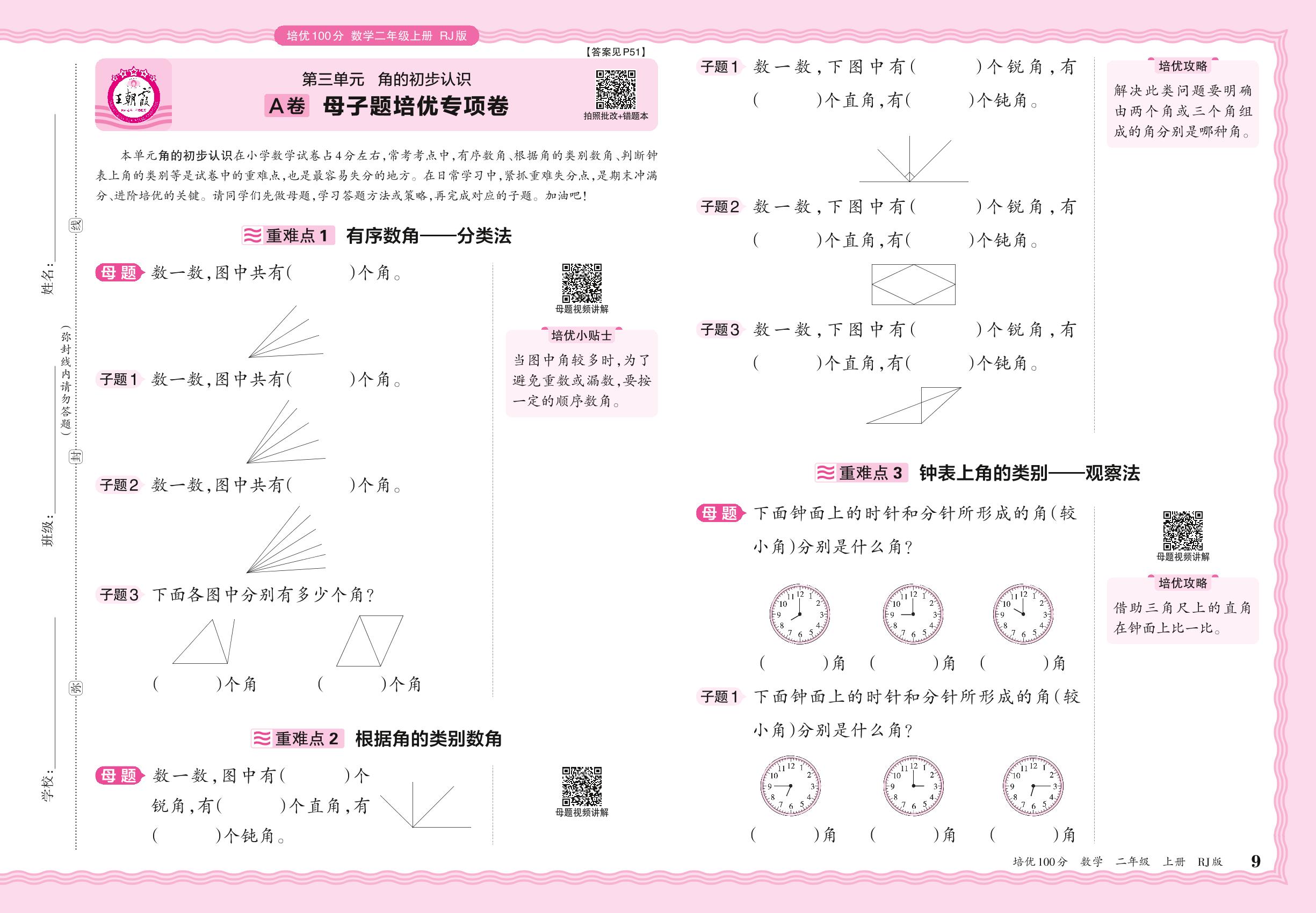 2024秋上册二年级数学人教版 第三单元A卷 母子题培优专项卷