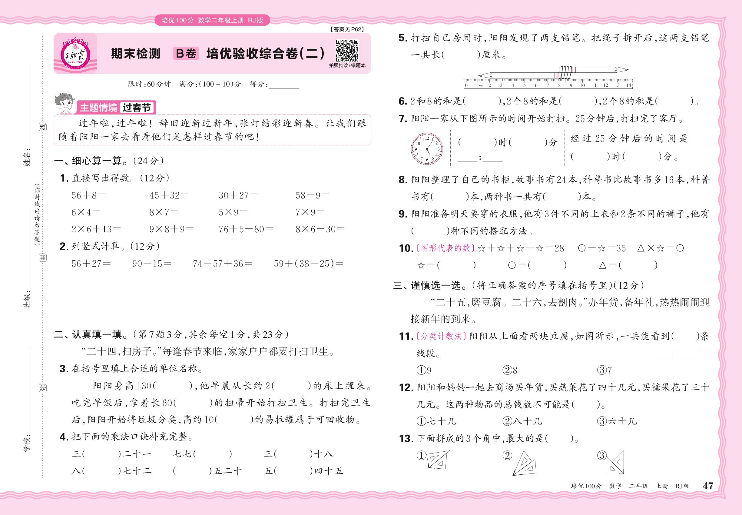 2024秋上册二年级数学人教版 期末检测B卷 培优验收综合卷(二)