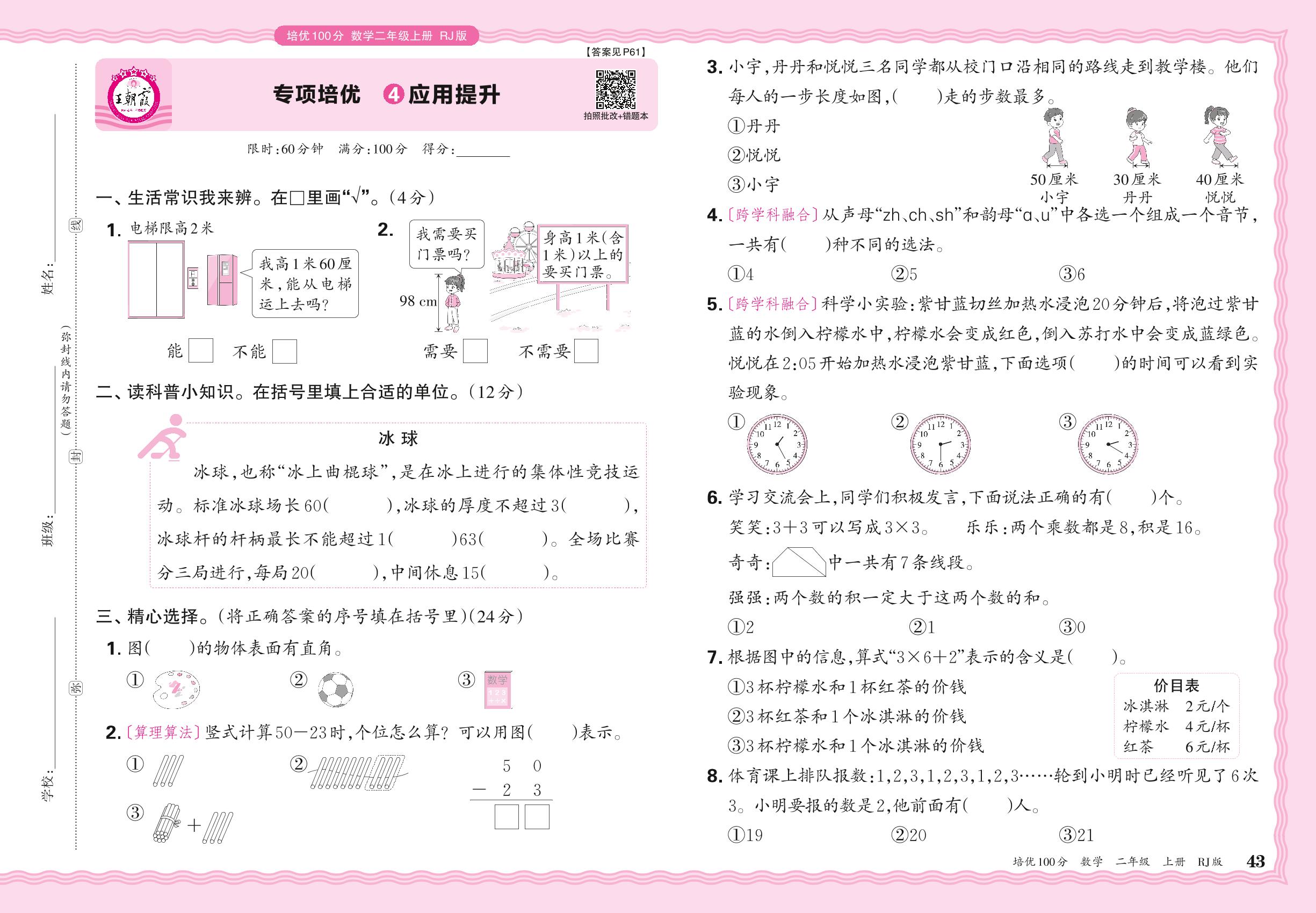 2024秋上册二年级数学人教版 期末专项卷PY版·应用提升【4】