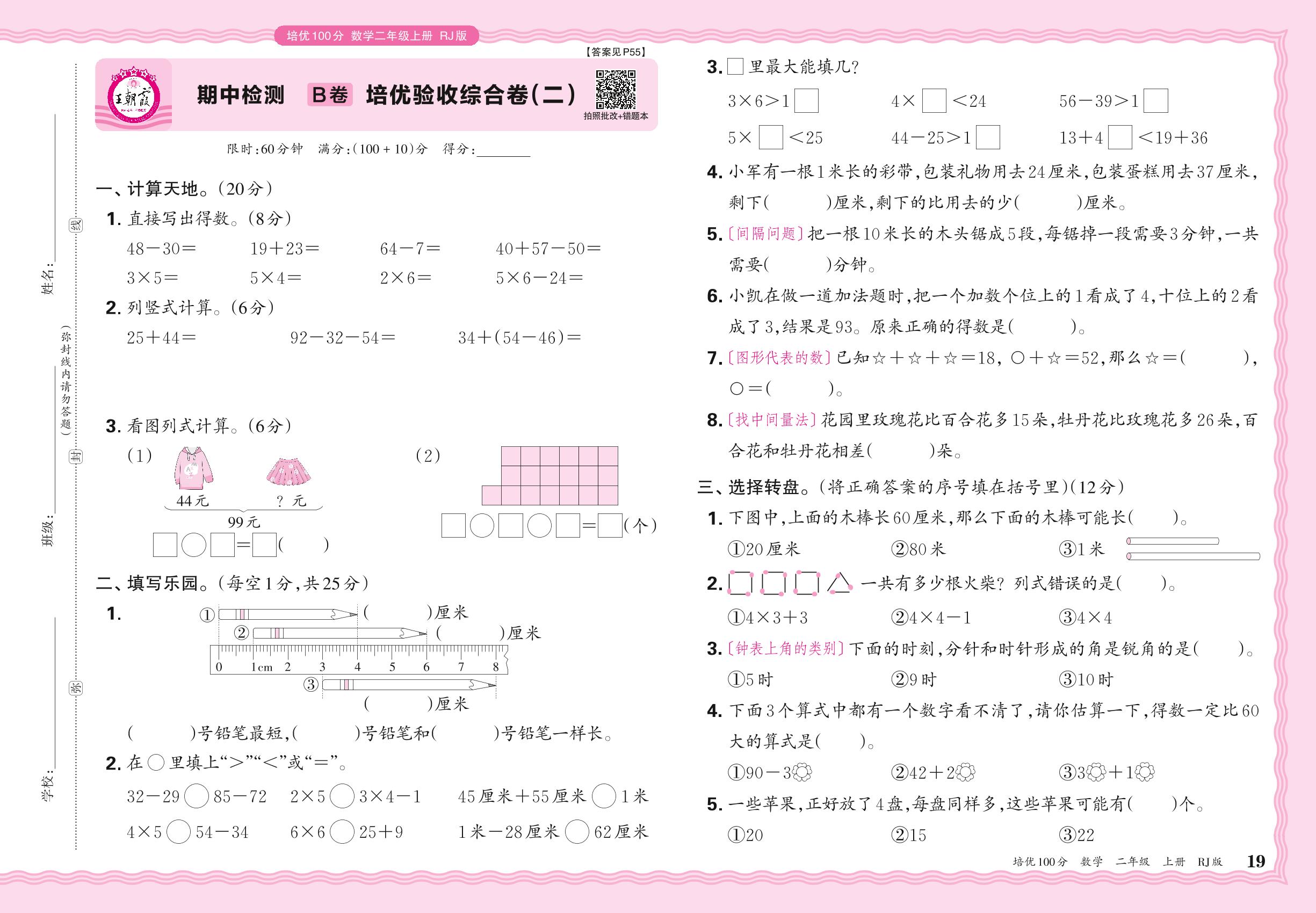 2024秋上册二年级数学人教版 期中检测B卷 培优验收综合卷(二)