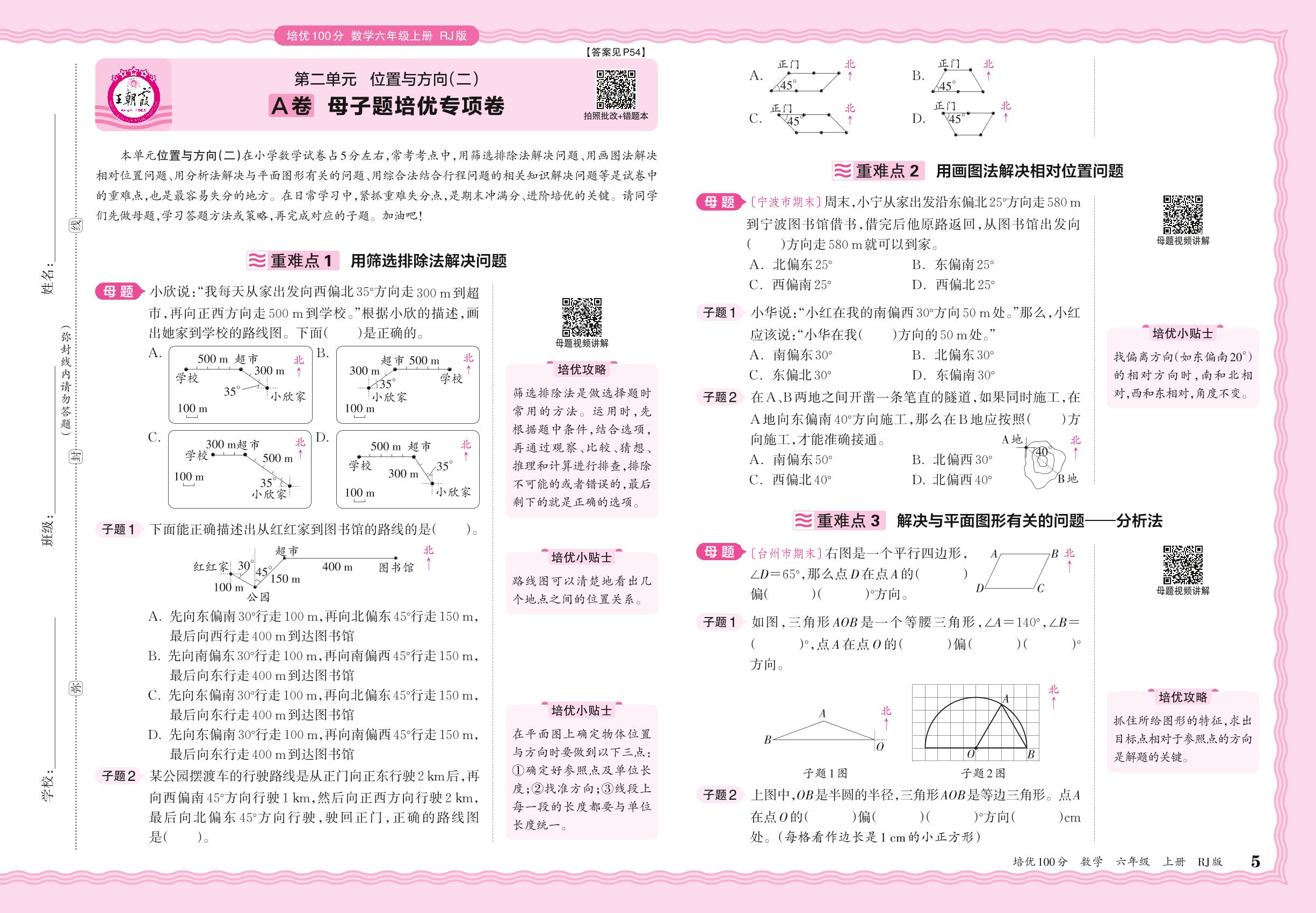 2024秋上册六年级数学人教版 第二单元A卷 母子题培优专项卷