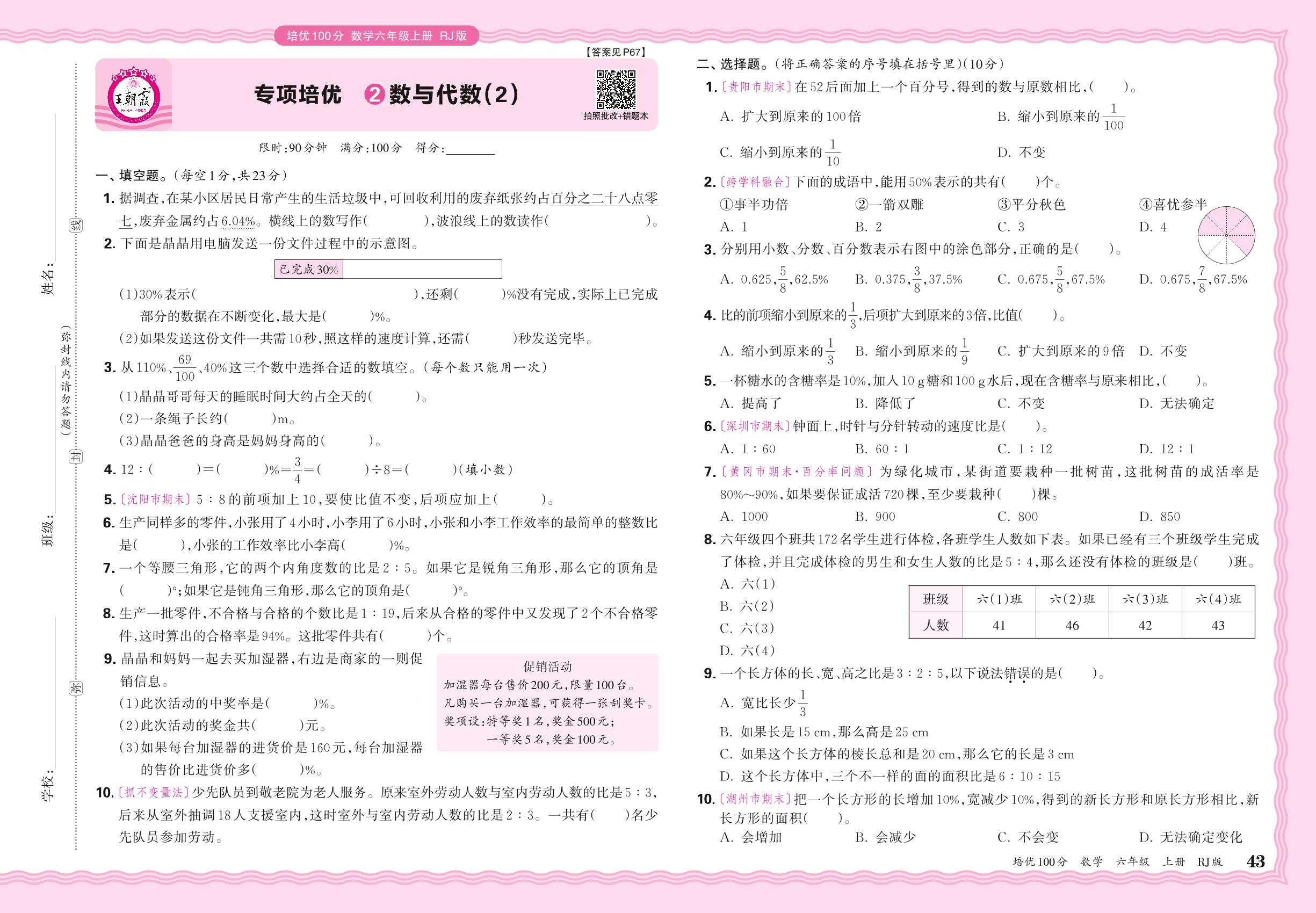 2024秋上册六年级数学人教版 期末专项卷PY版·数与代数(2)【2】