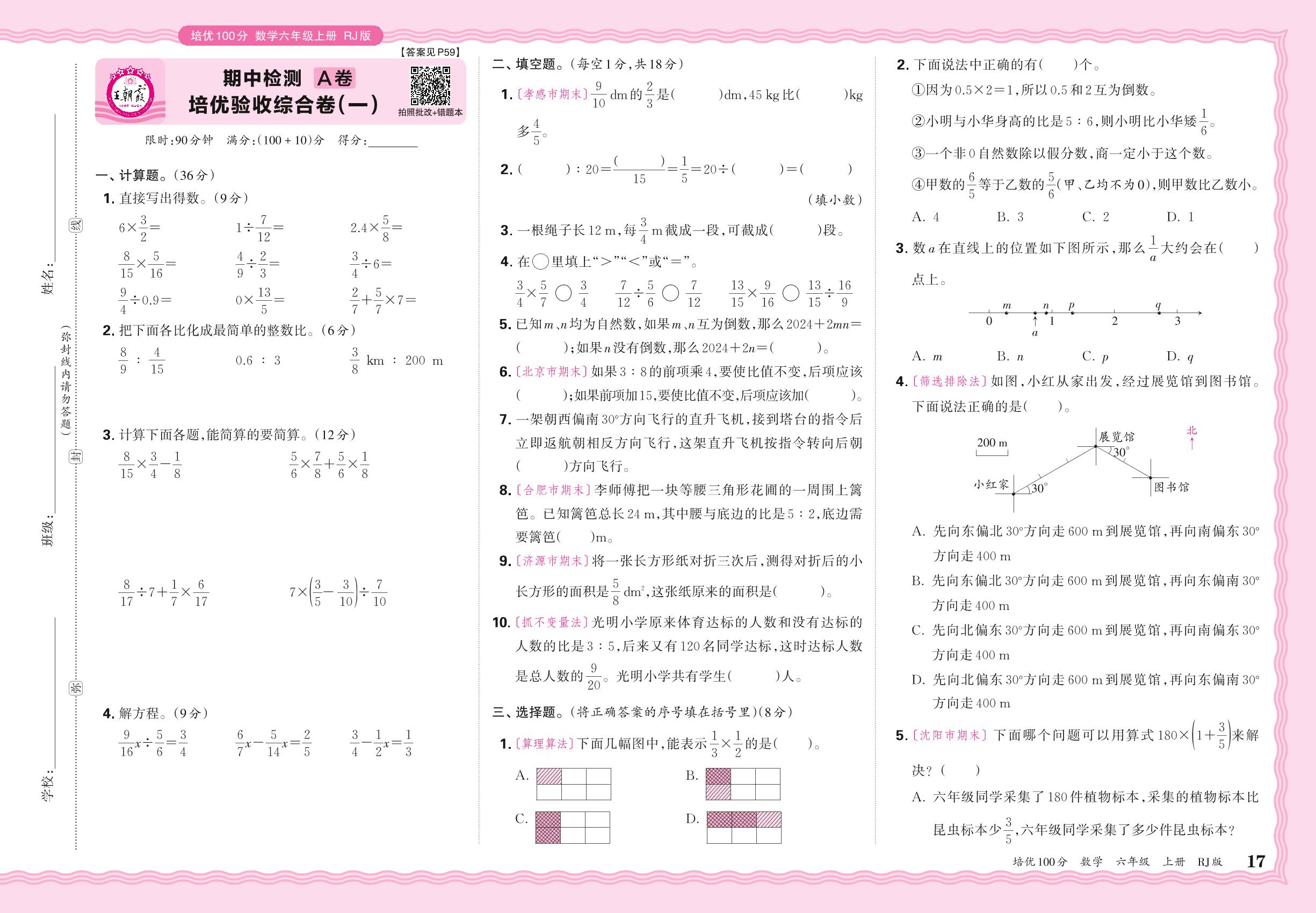 2024秋上册六年级数学人教版 期中检测A卷 培优验收综合卷(一)