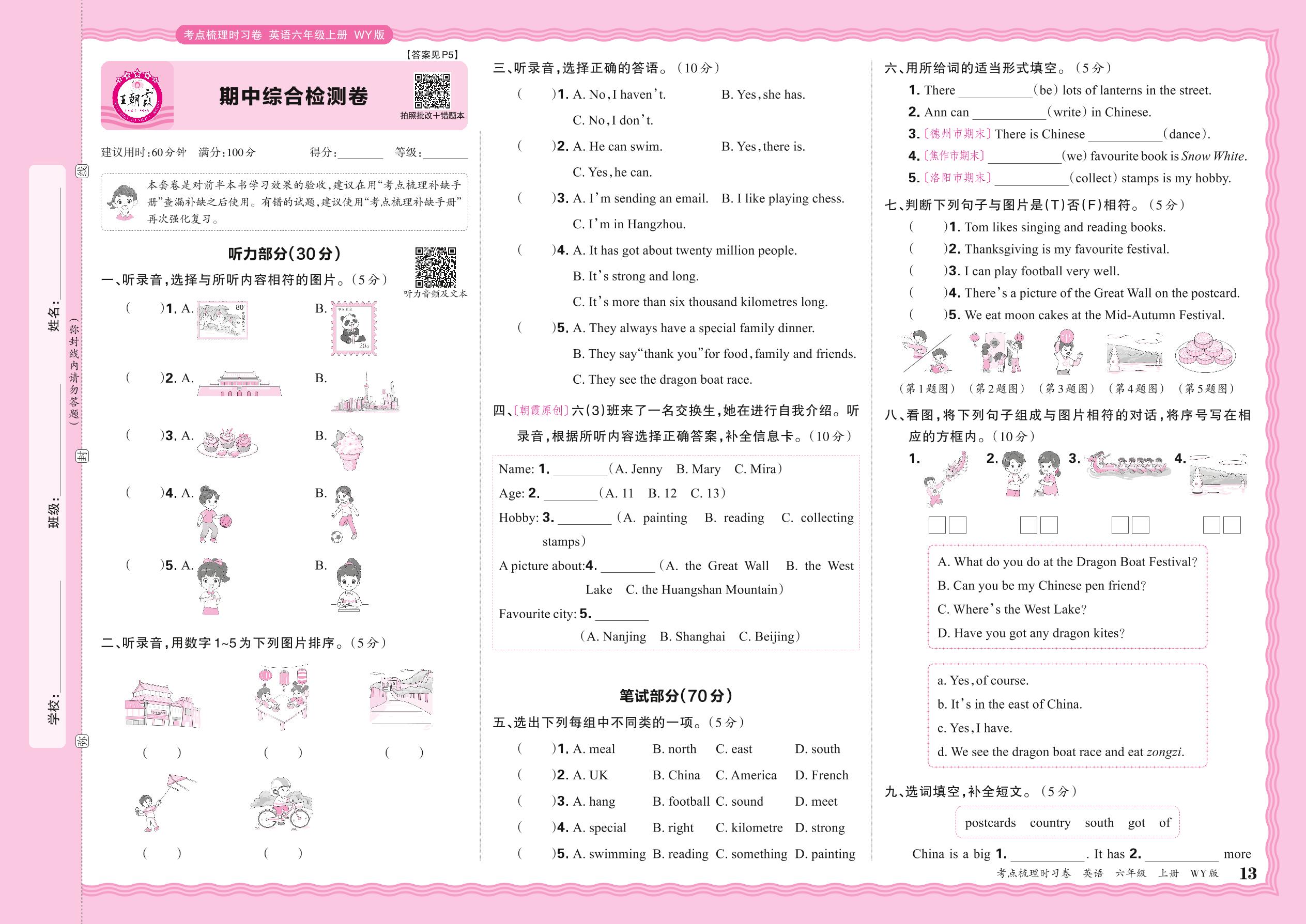 2024秋上册六年级英语外研版(三起始) 期中综合检测卷