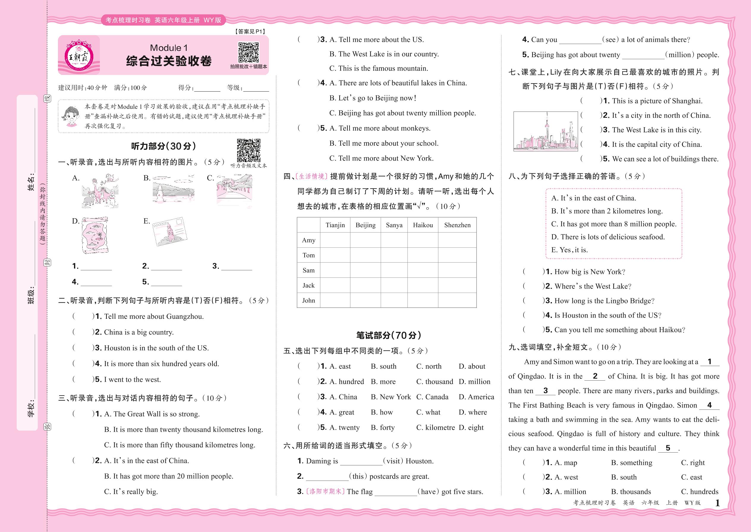 2024秋上册六年级英语外研版(三起始) Module 1 综合过关验收卷