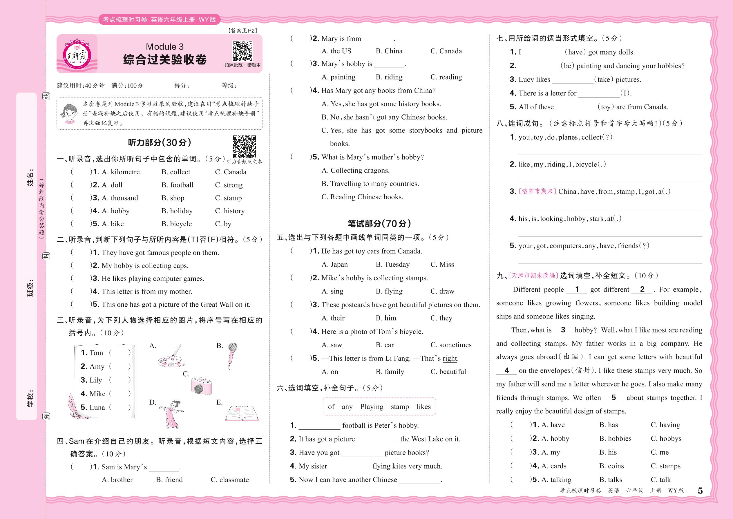2024秋上册六年级英语外研版(三起始) Module 3 综合过关验收卷