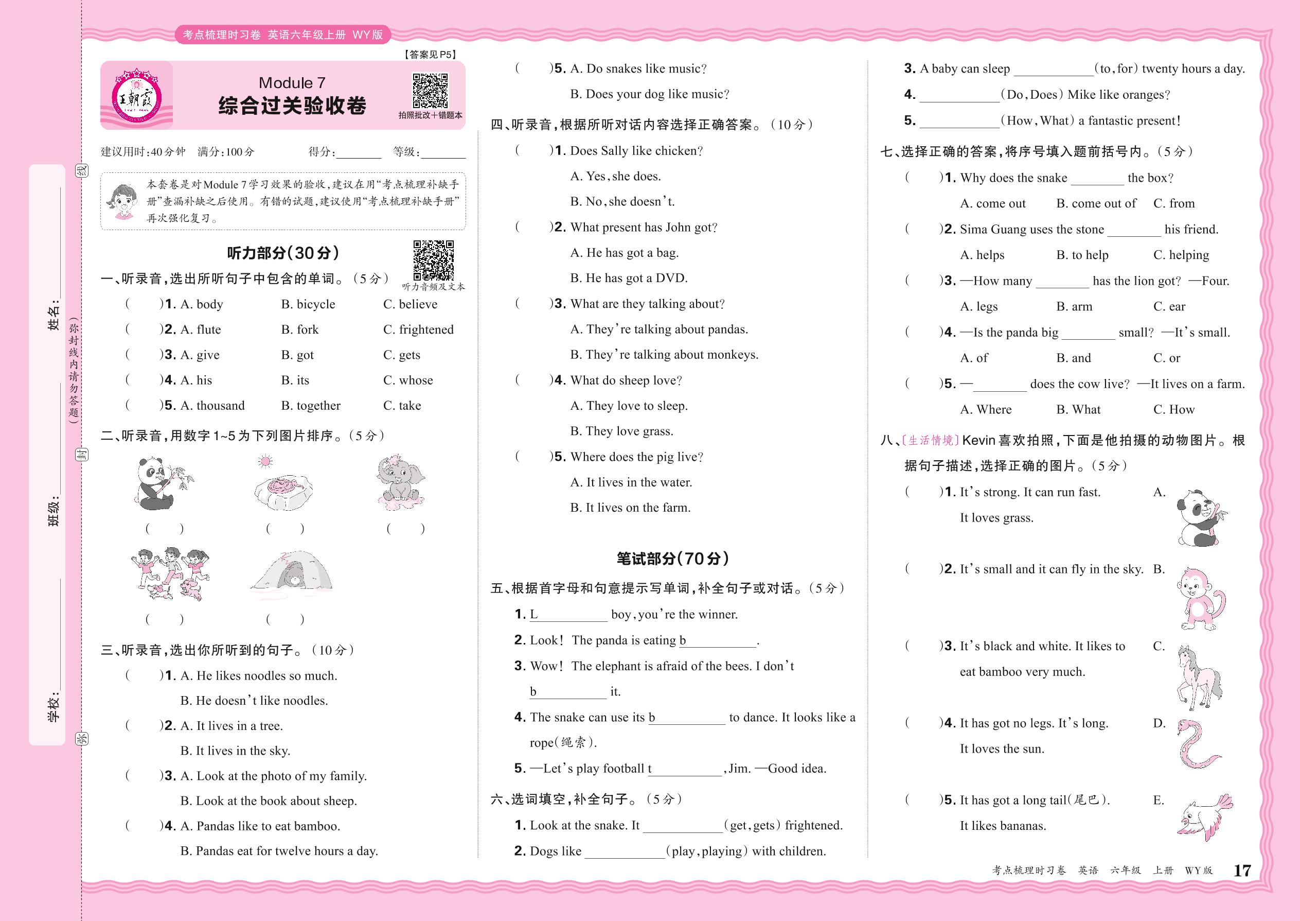 2024秋上册六年级英语外研版(三起始) Module 7 综合过关验收卷