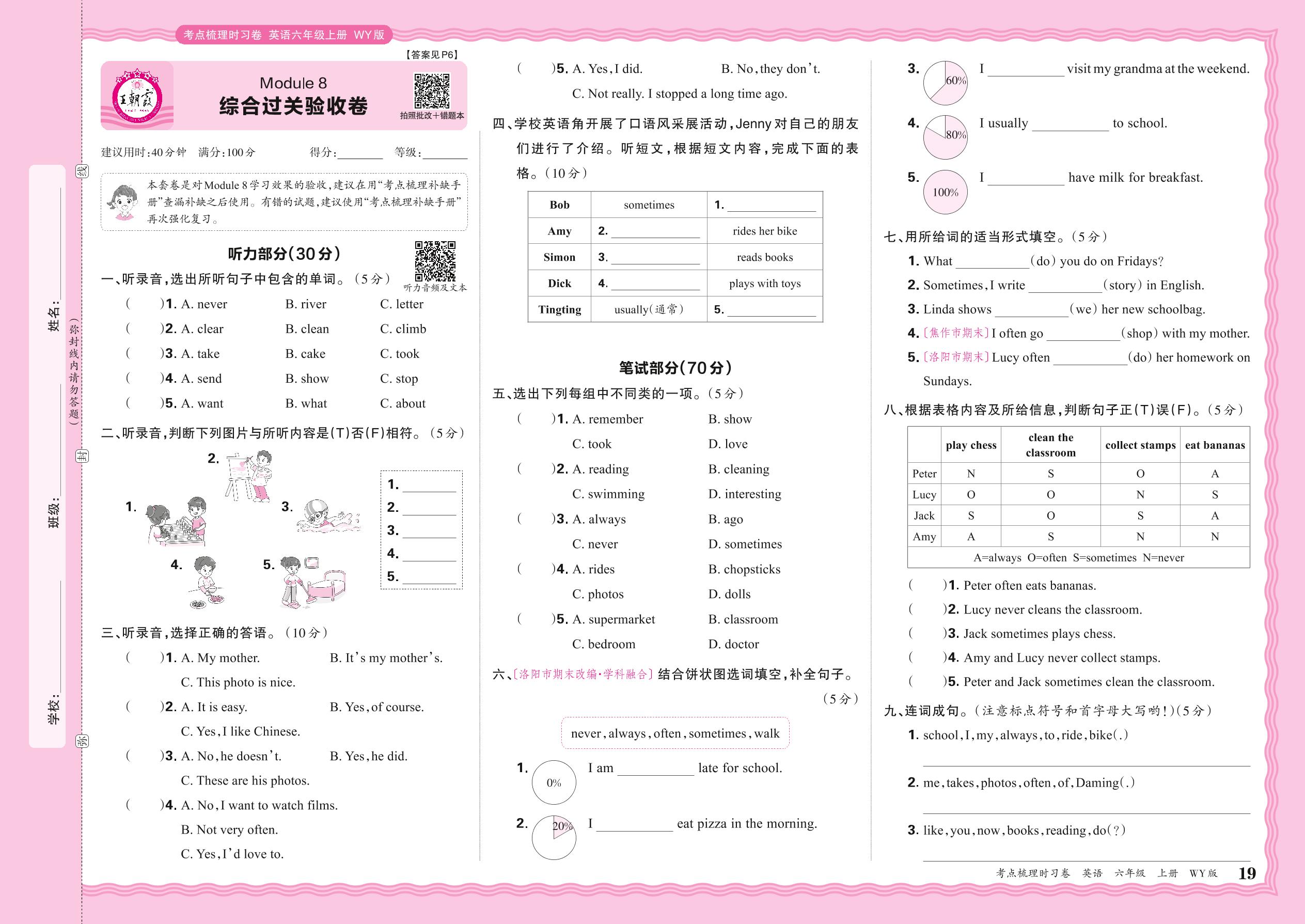 2024秋上册六年级英语外研版(三起始) Module 8 综合过关验收卷