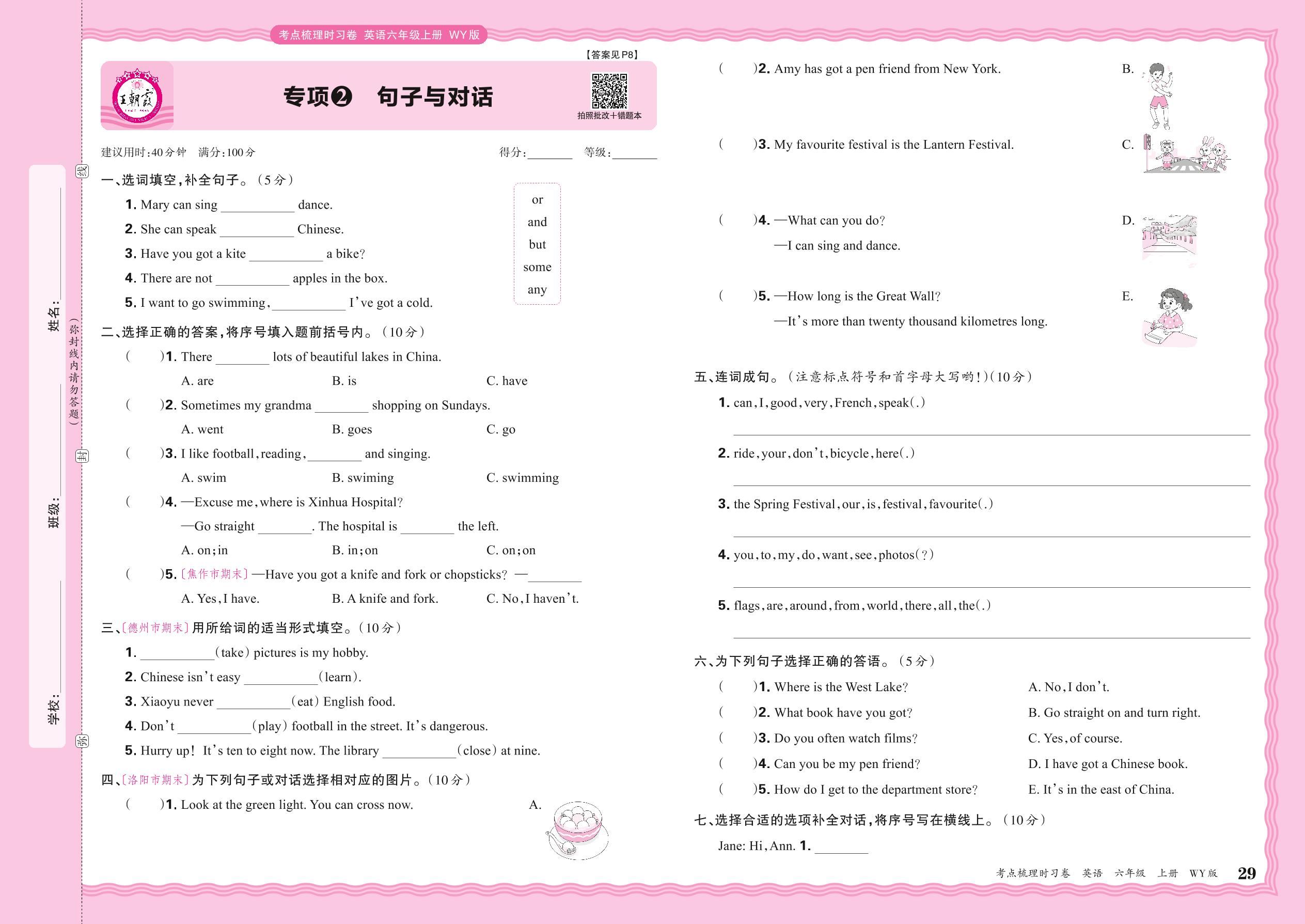 2024秋上册六年级英语外研版(三起始) 期末专项卷KD版·句子与对话【2】