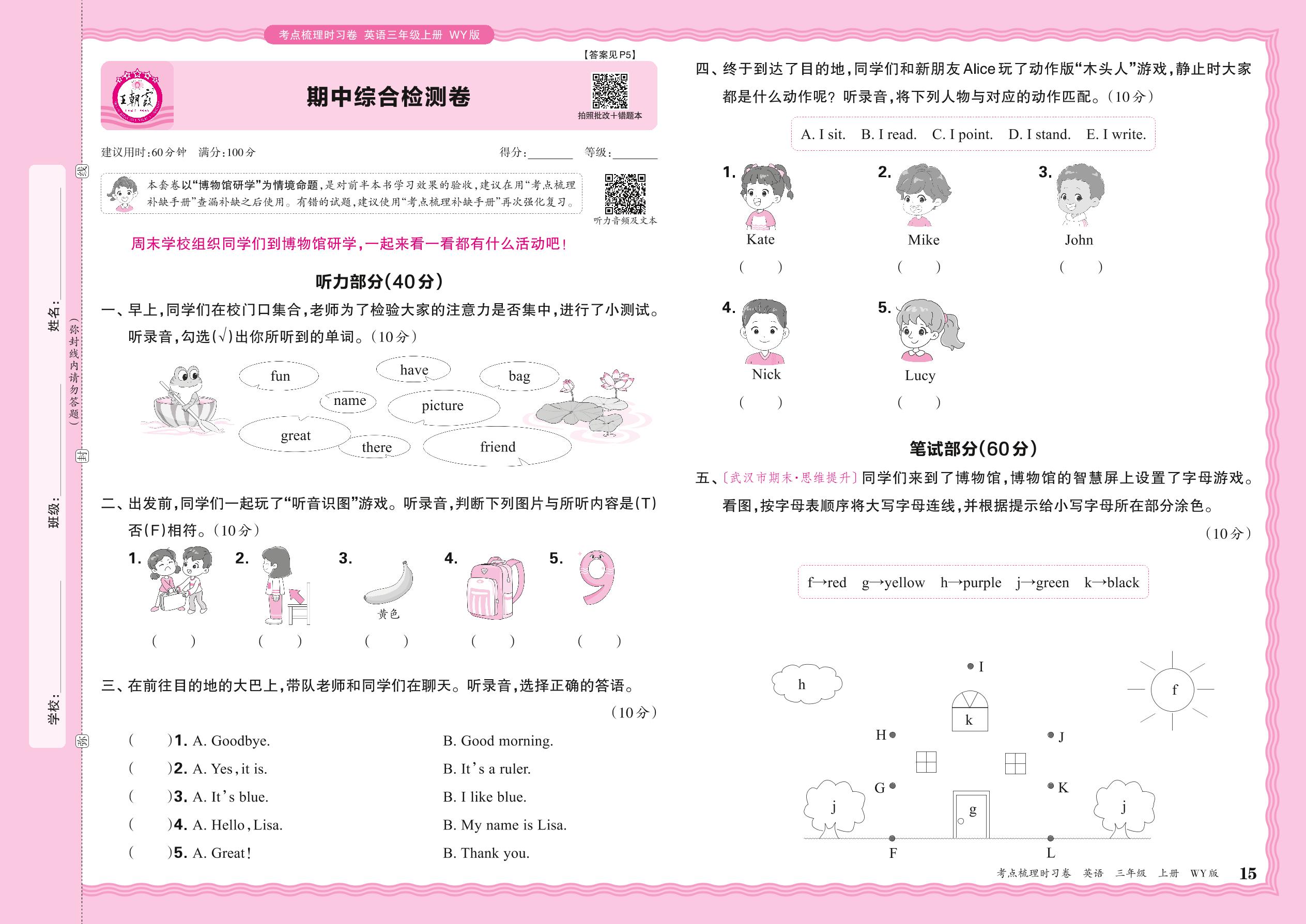 2024秋上册三年级英语外研版(三起始) 期中综合检测卷