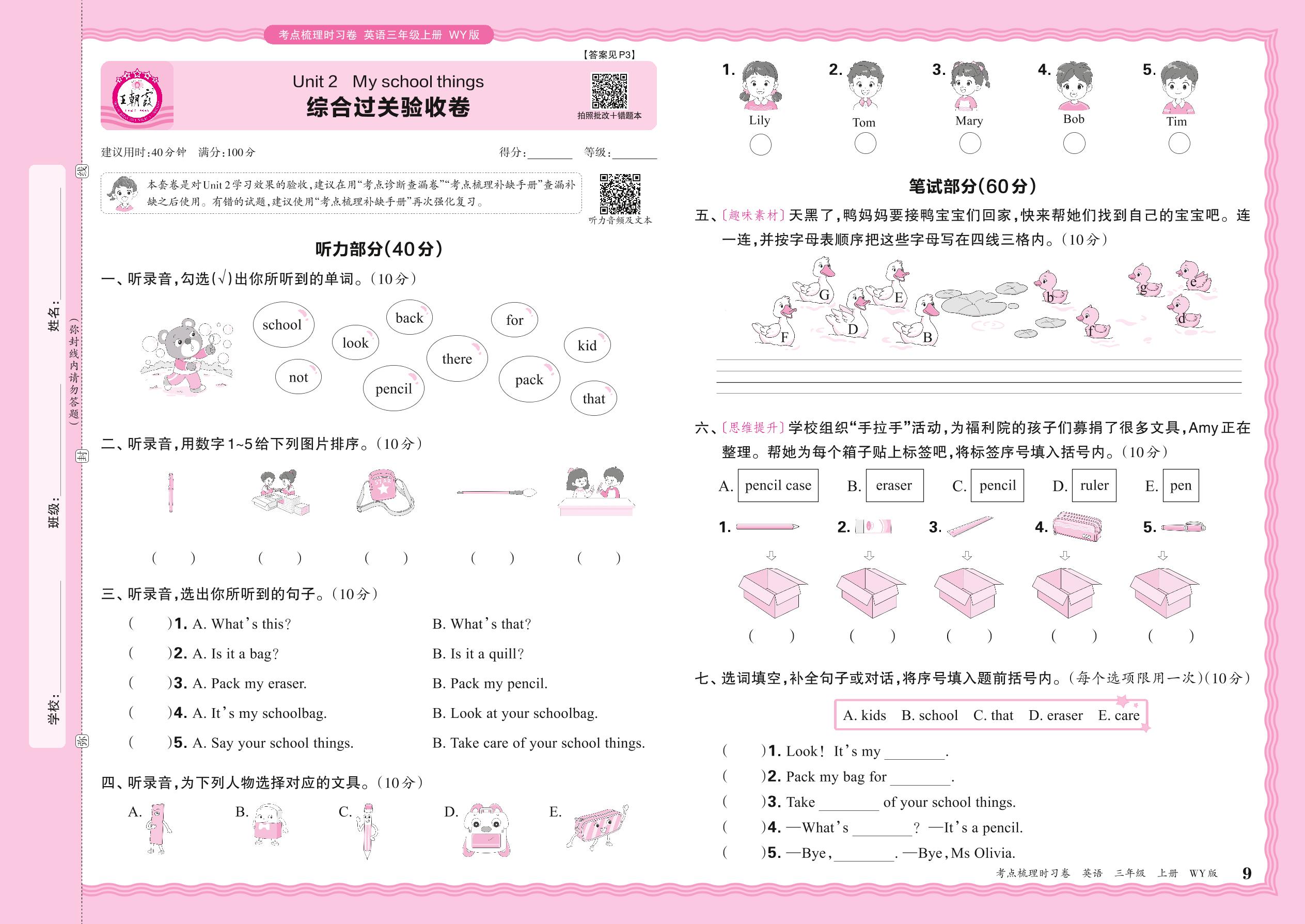 2024秋上册三年级英语外研版(三起始) Unit 2 综合过关验收卷