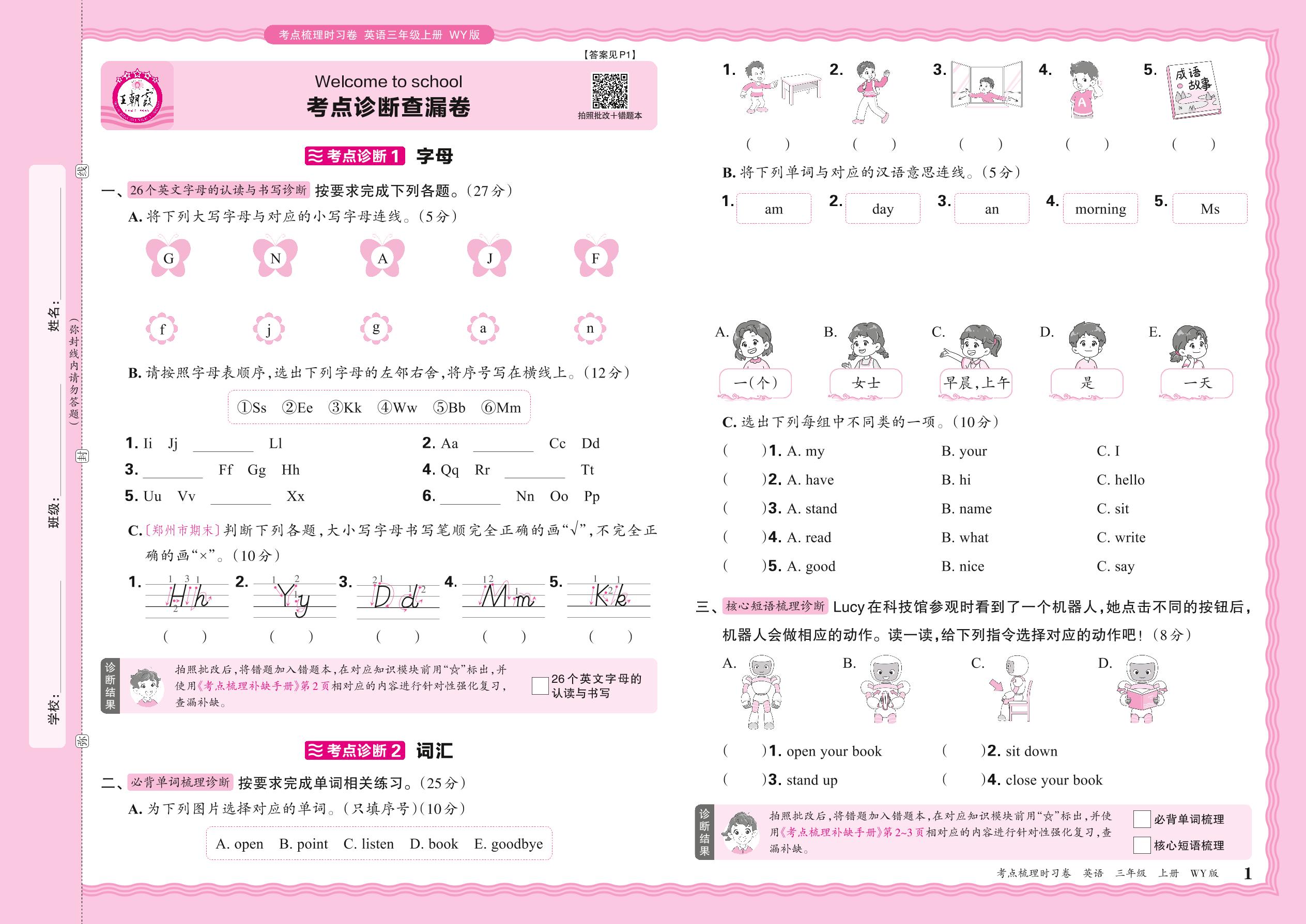 2024秋上册三年级英语外研版(三起始) Welcome to school 考点诊断查漏卷