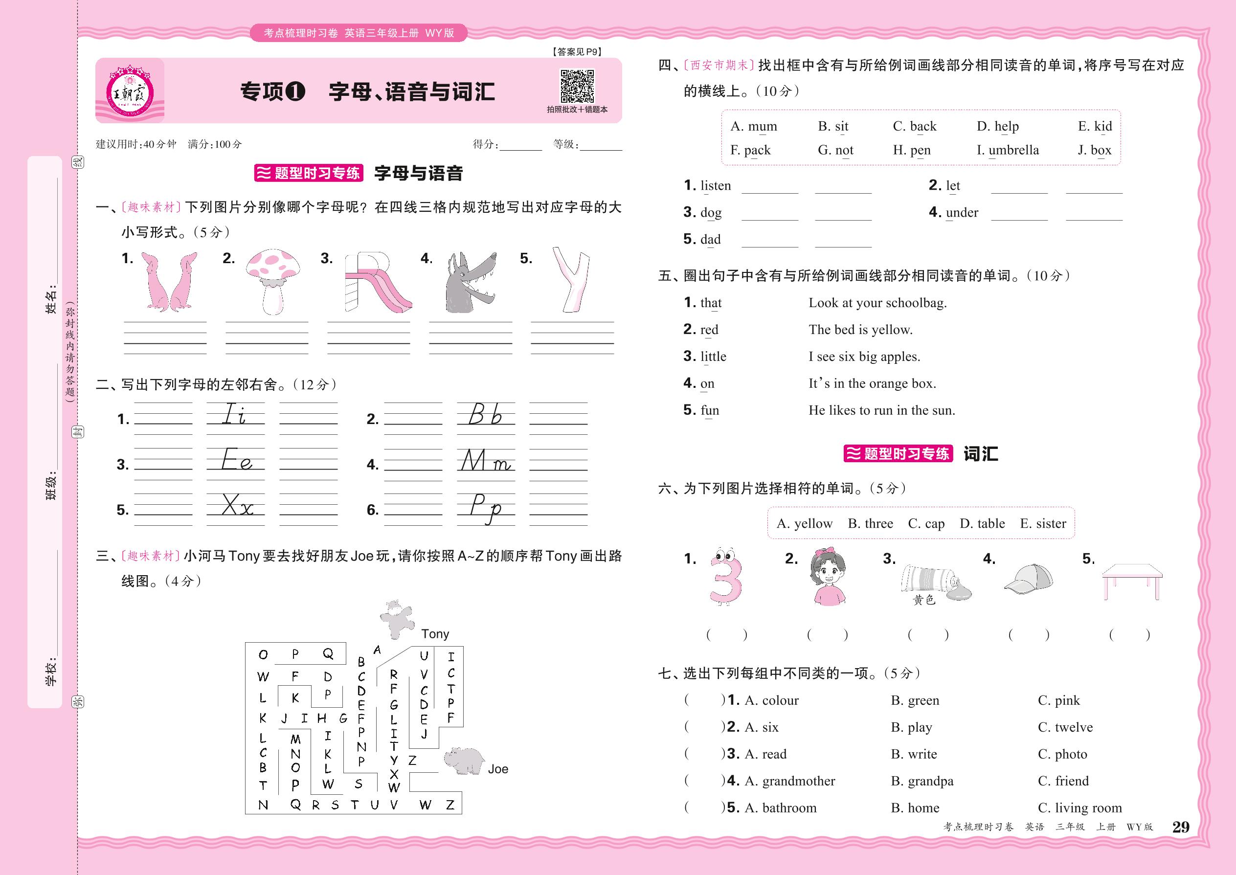 2024秋上册三年级英语外研版(三起始) 期末专项卷KD版·字母、语音与词汇【1】