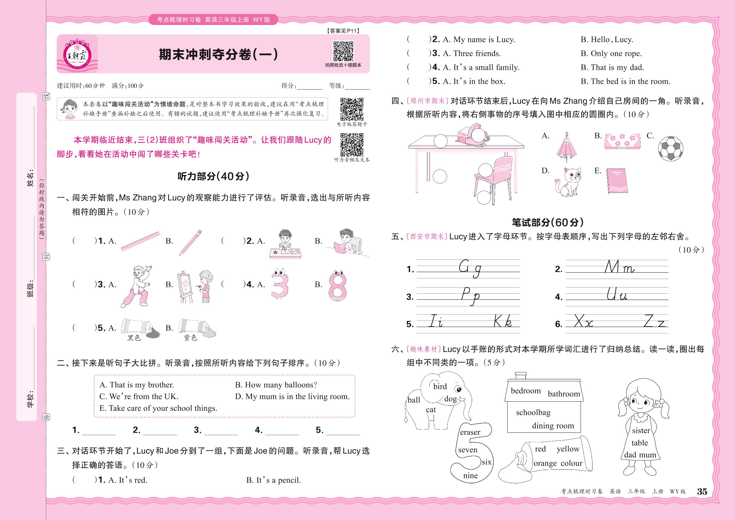 2024秋上册三年级英语外研版(三起始) 期末冲刺夺分卷(一)