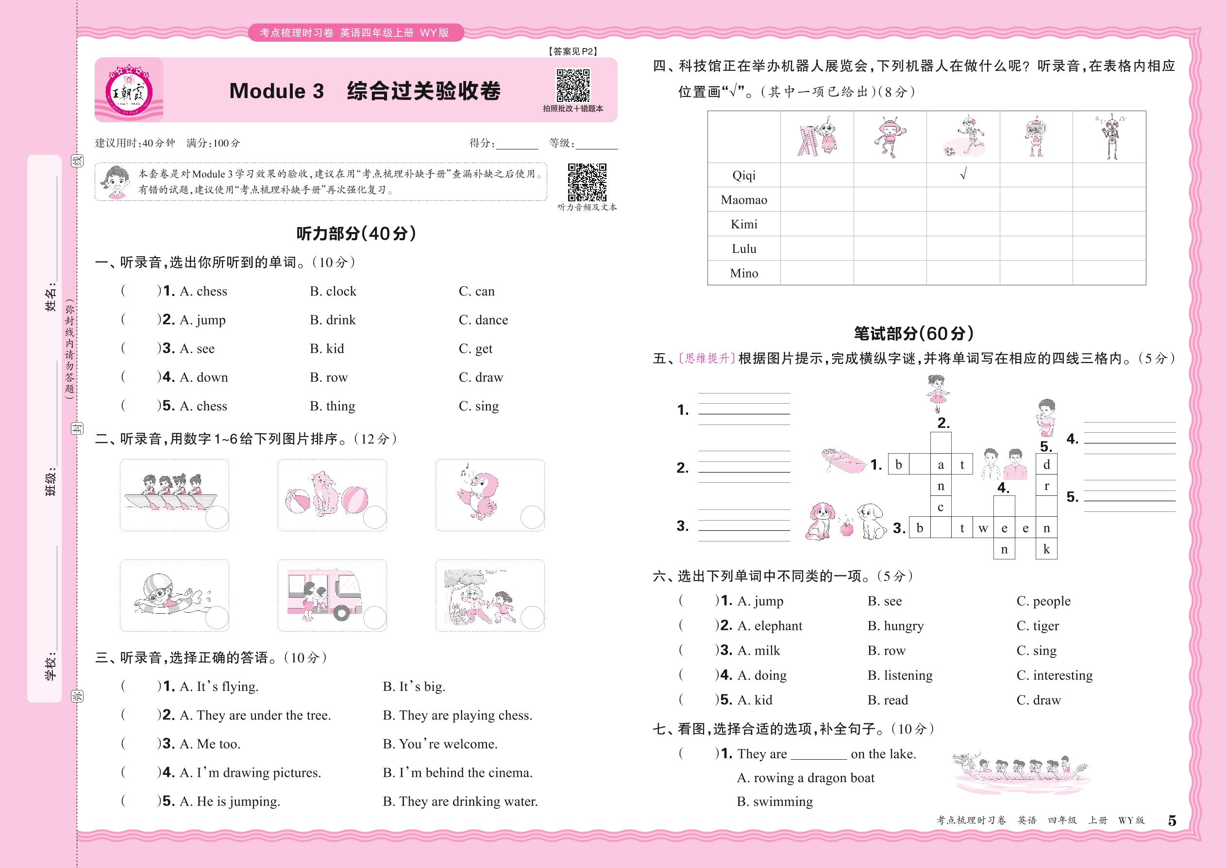 2024秋上册四年级英语外研版(三起始) Module 3 综合过关验收卷