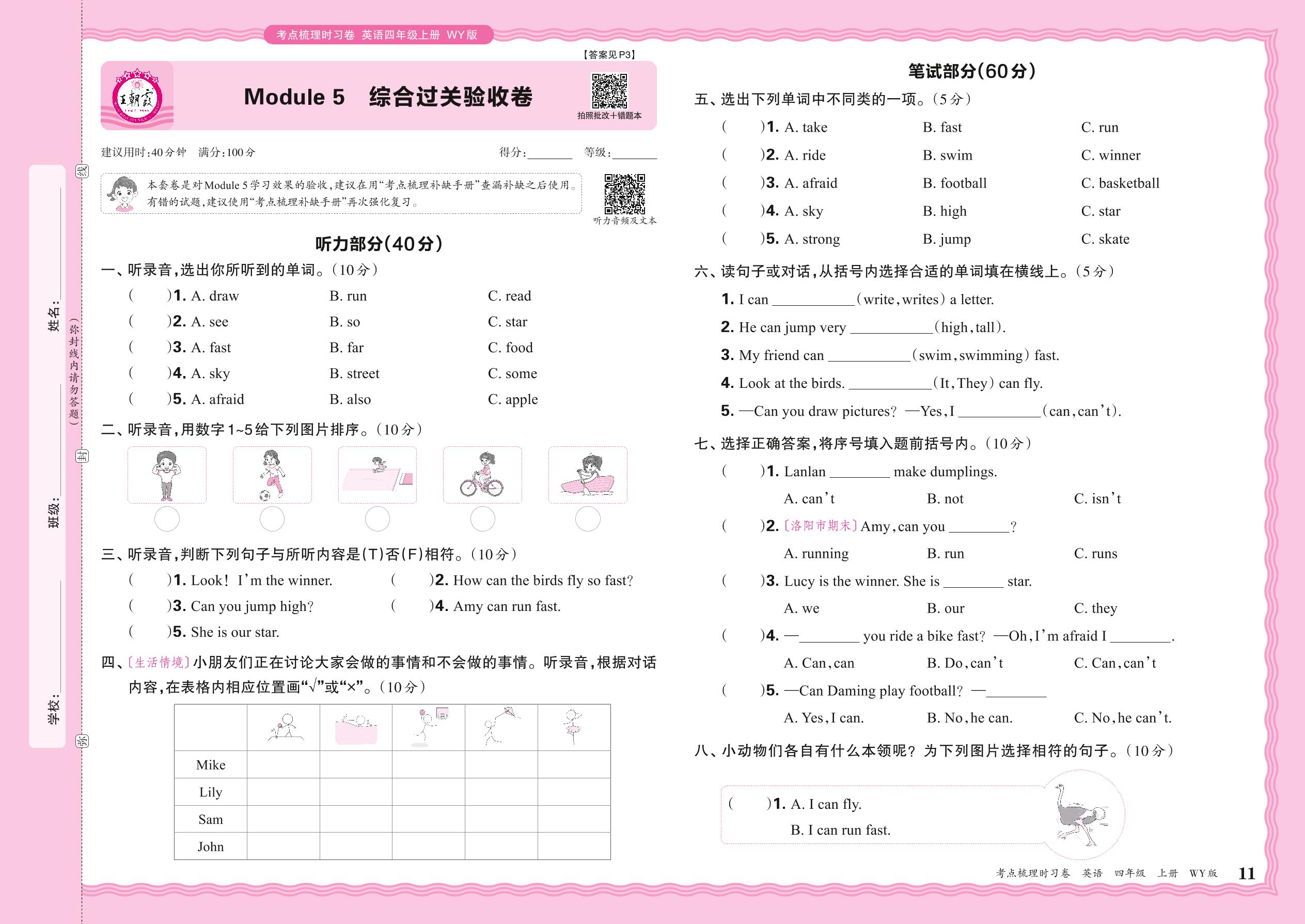 2024秋上册四年级英语外研版(三起始) Module 5 综合过关验收卷