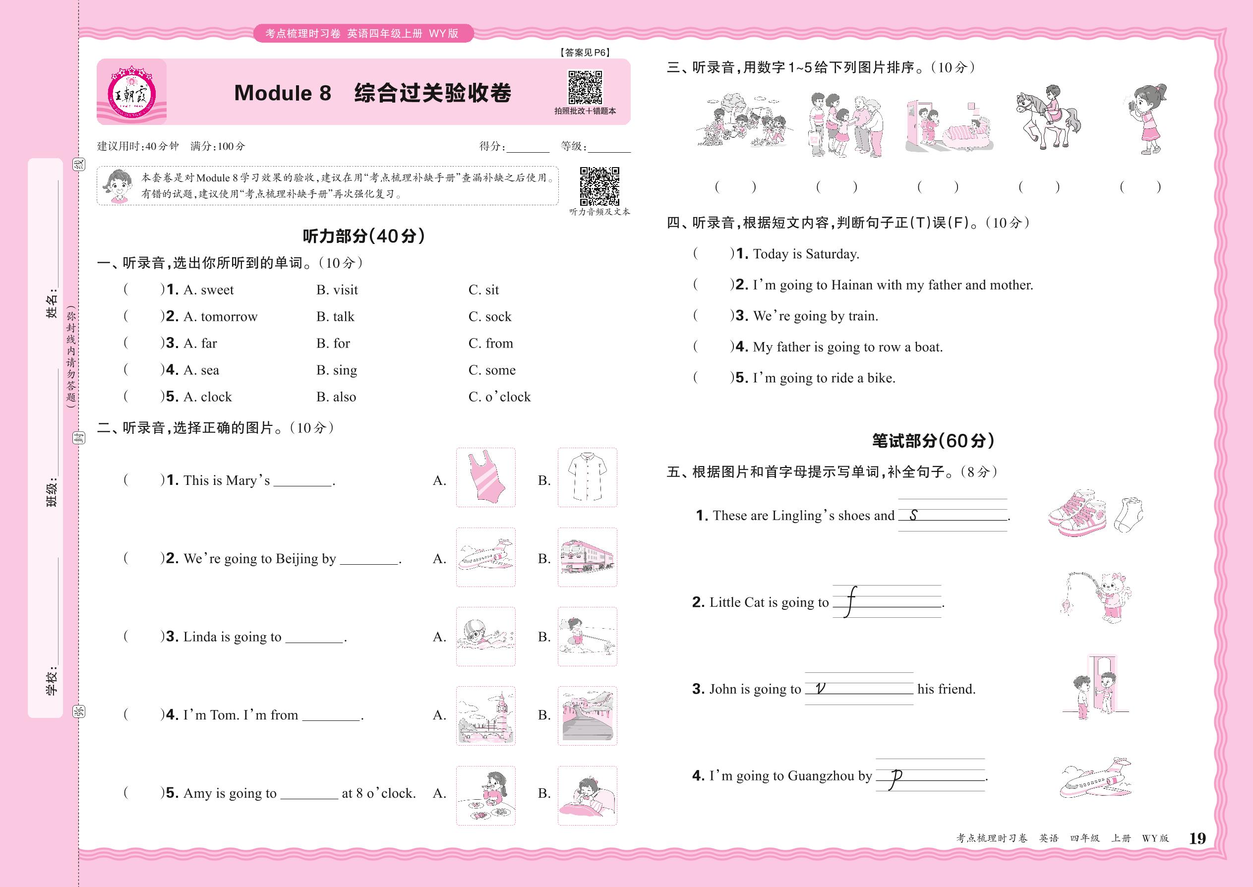 2024秋上册四年级英语外研版(三起始) Module 8 综合过关验收卷