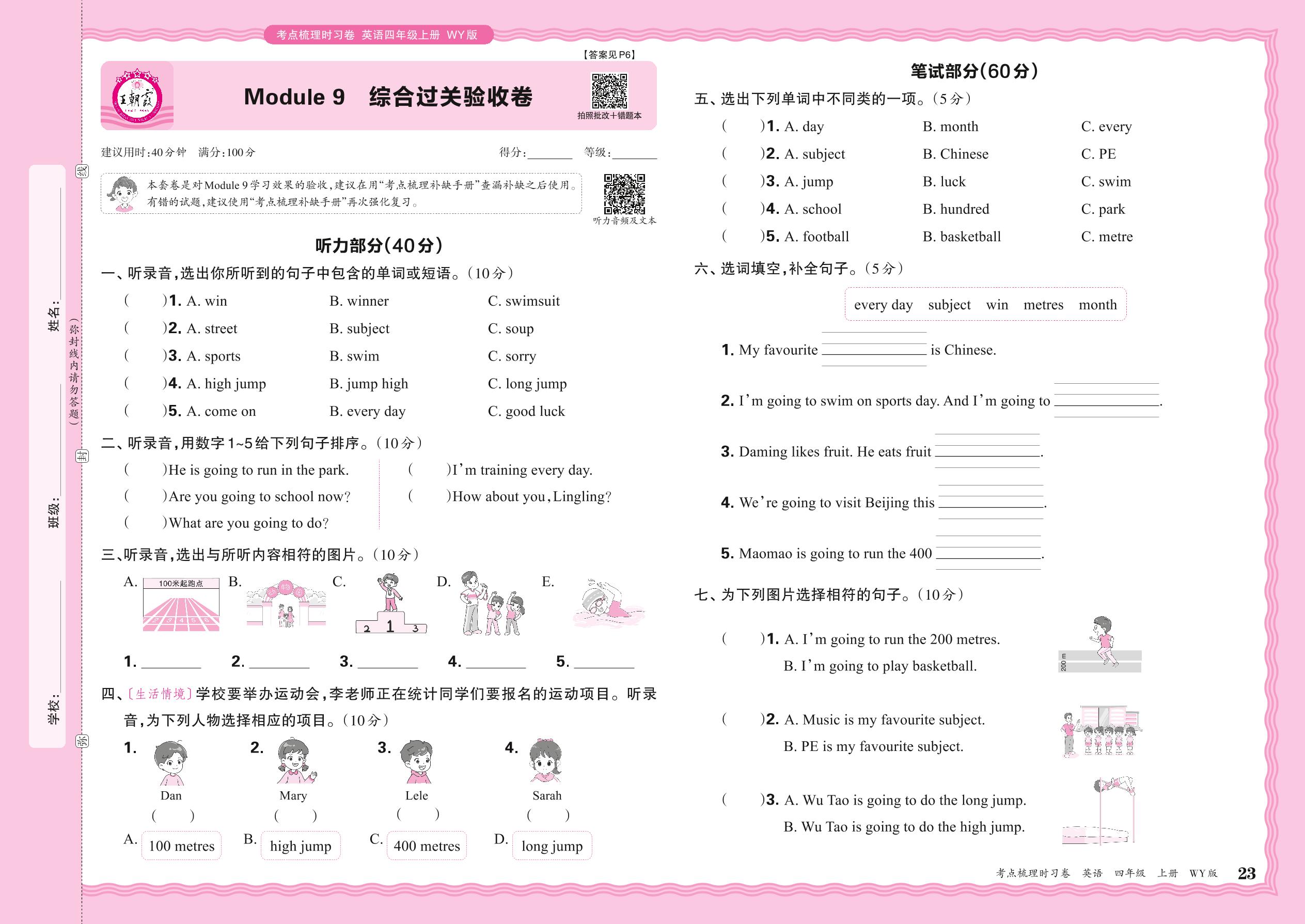 2024秋上册四年级英语外研版(三起始) Module 9 综合过关验收卷
