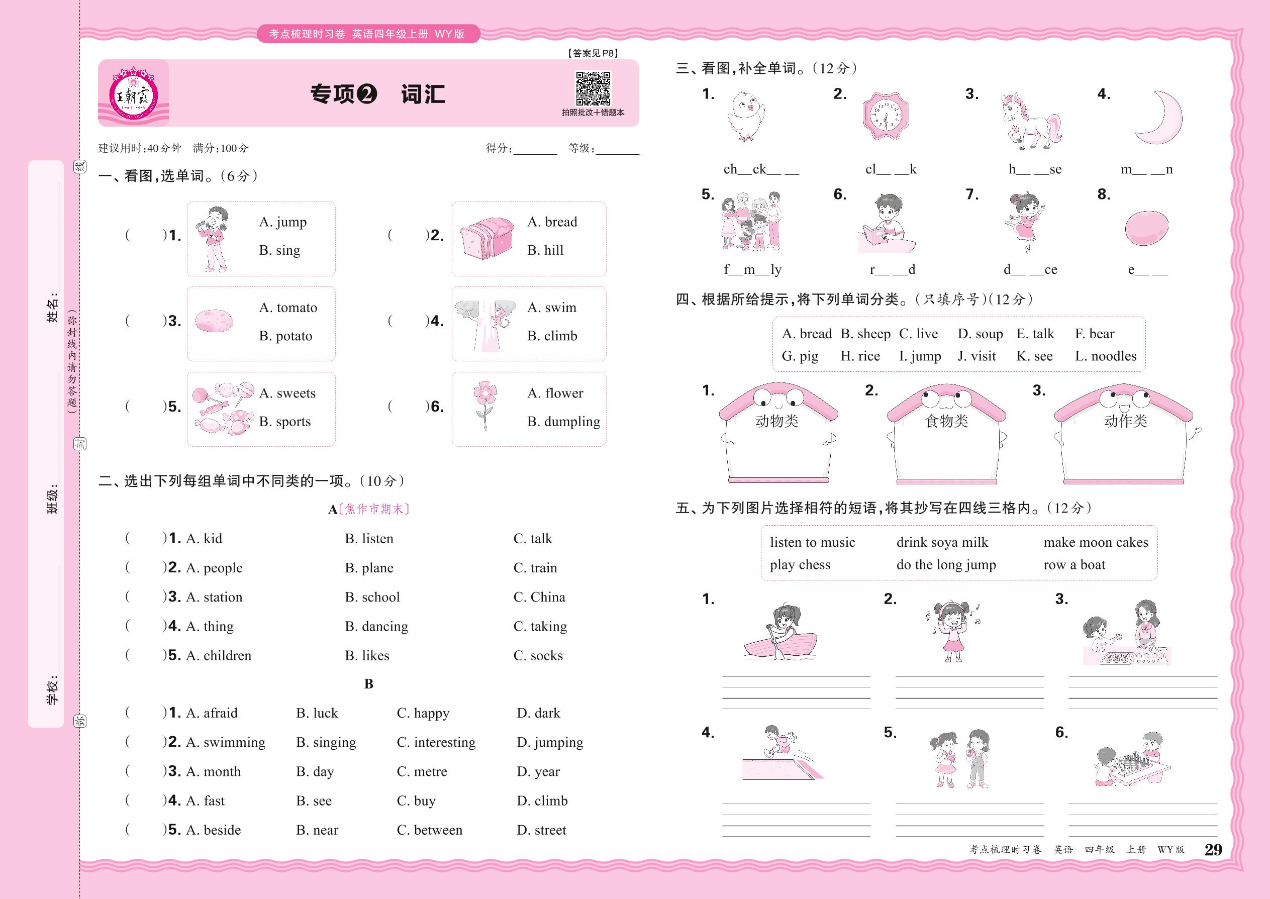 2024秋上册四年级英语外研版(三起始) 期末专项卷KD版·词汇【2】