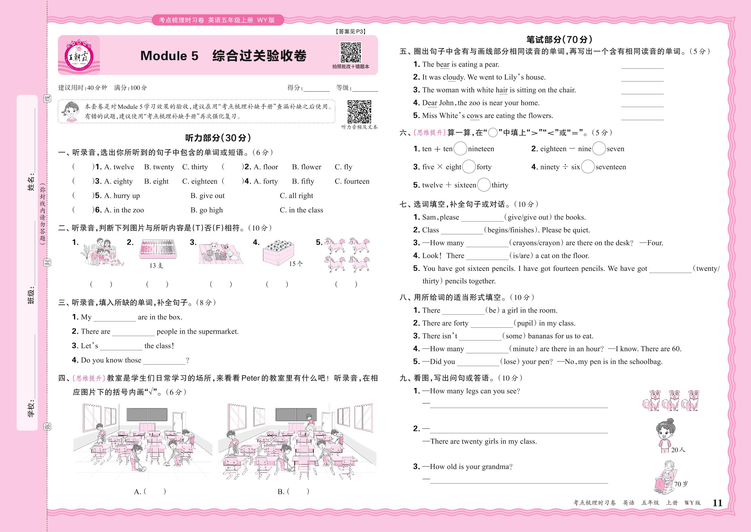 2024秋上册五年级英语外研版(三起始) Module 5 综合过关验收卷