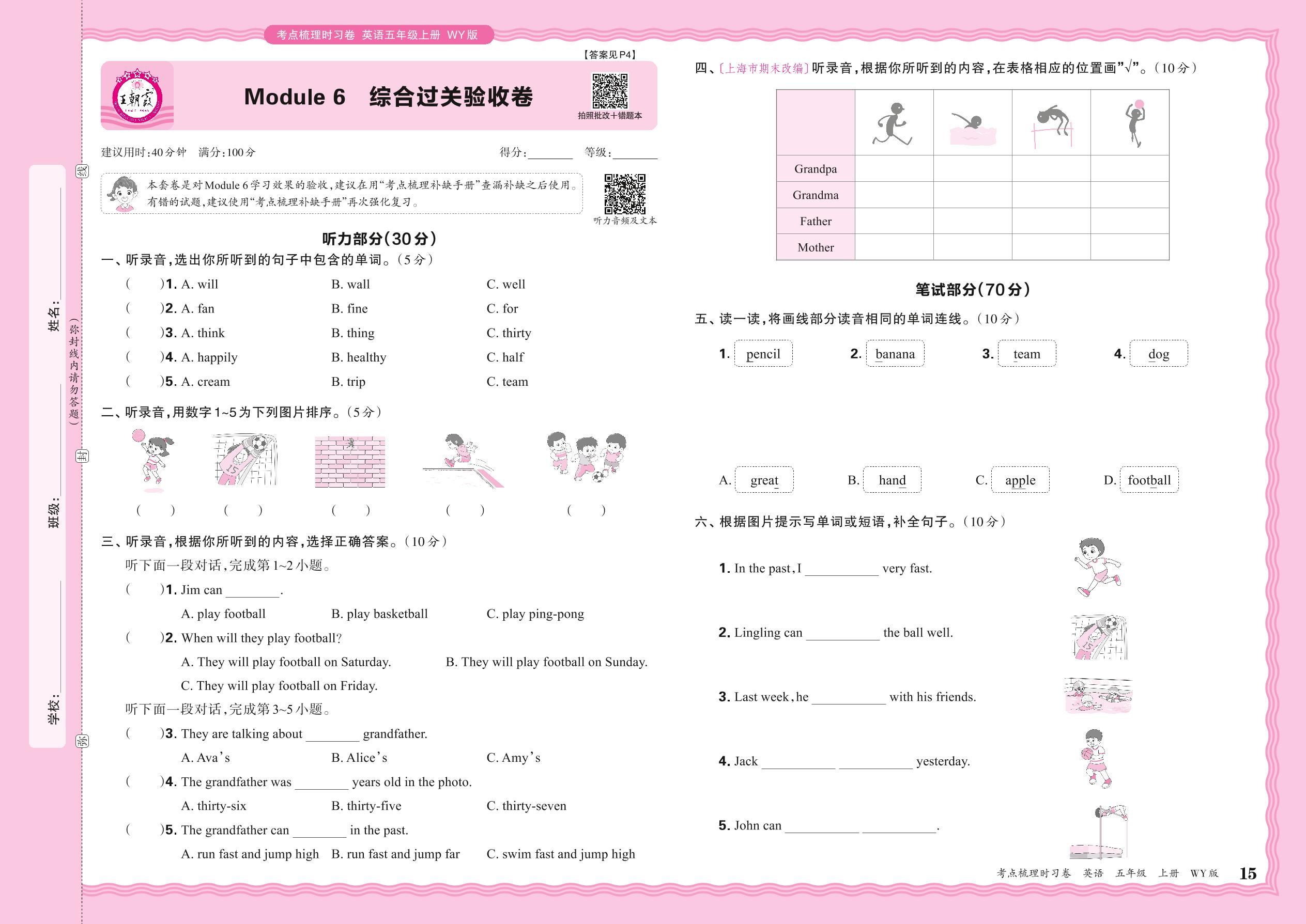 2024秋上册五年级英语外研版(三起始) Module 6 综合过关验收卷