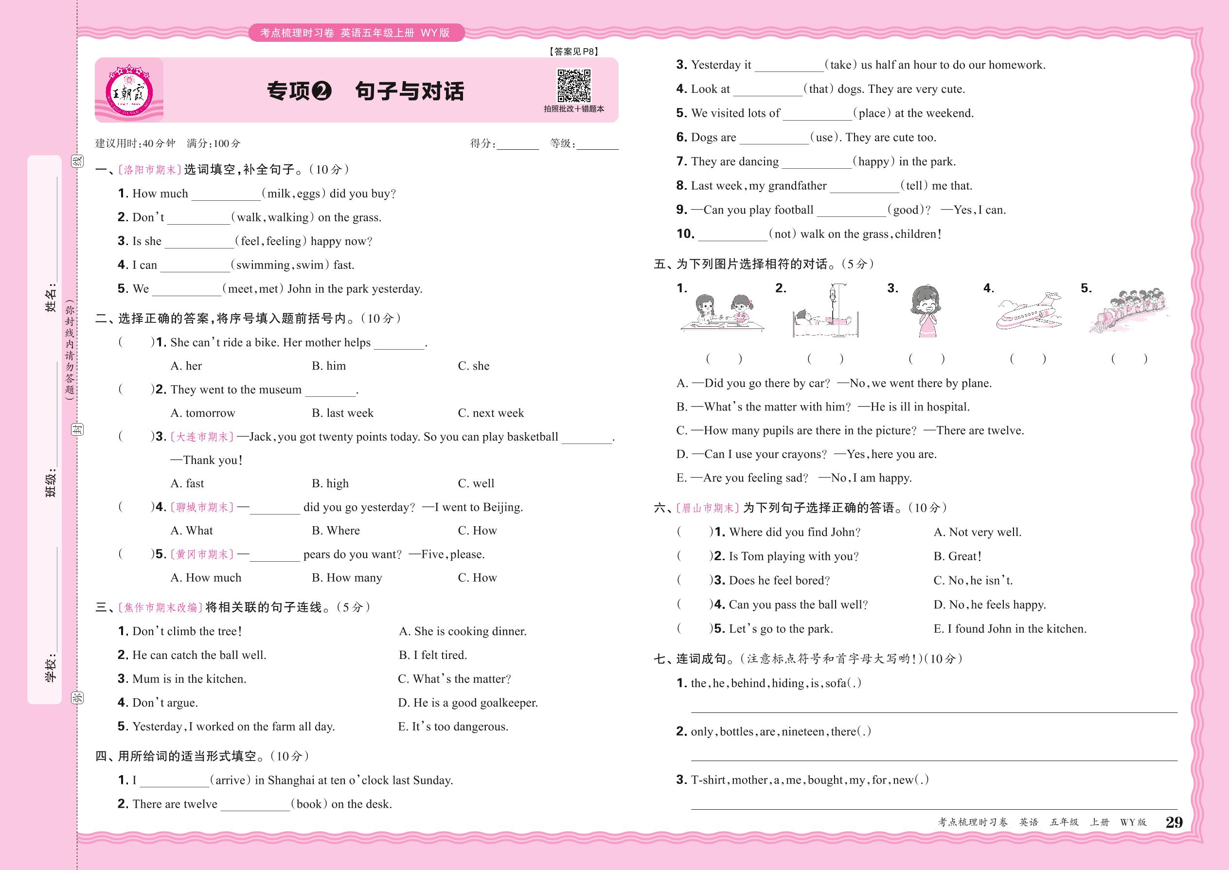 2024秋上册五年级英语外研版(三起始) 期末专项卷KD版·句子与对话【2】