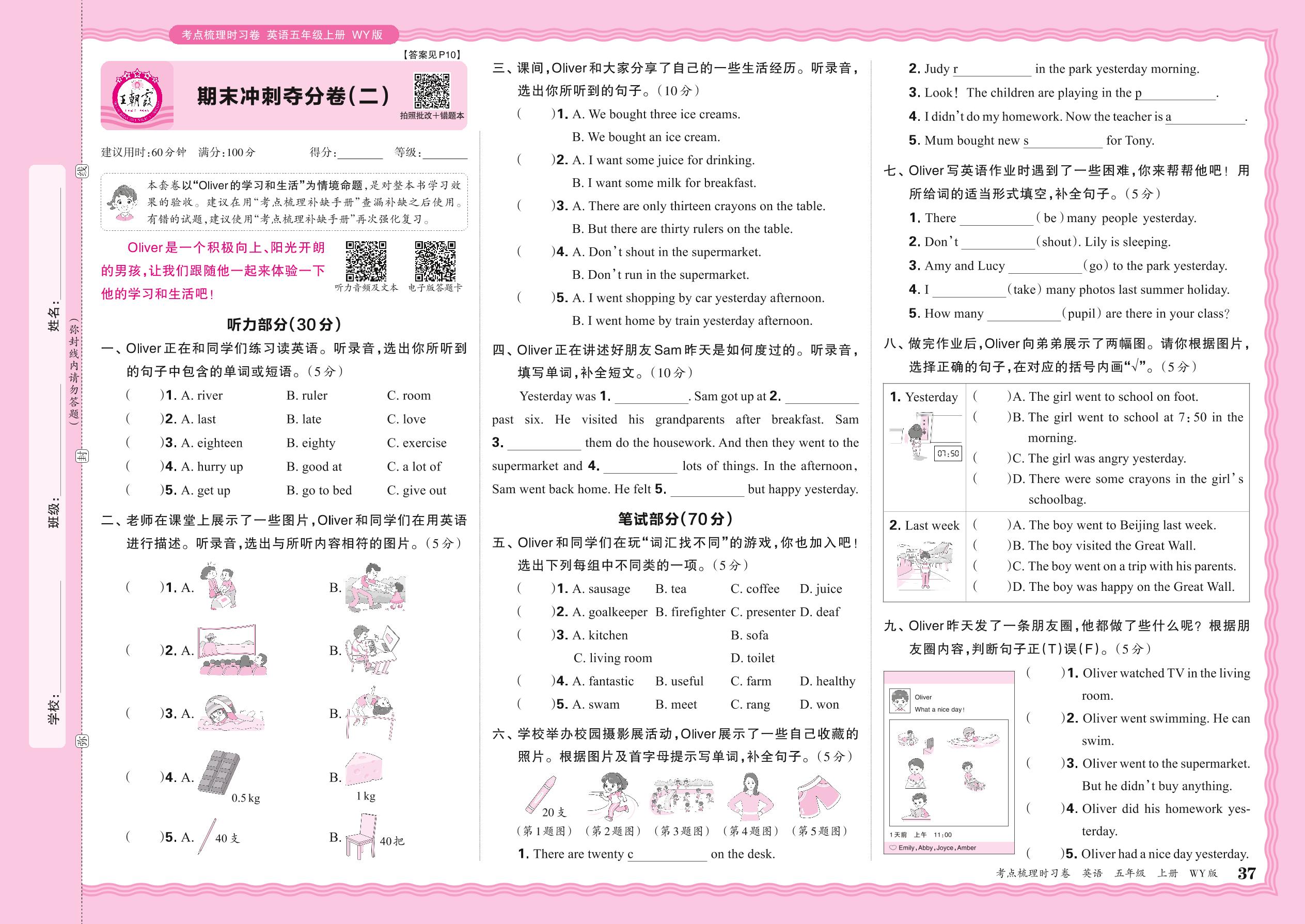 2024秋上册五年级英语外研版(三起始) 期末冲刺夺分卷(二)