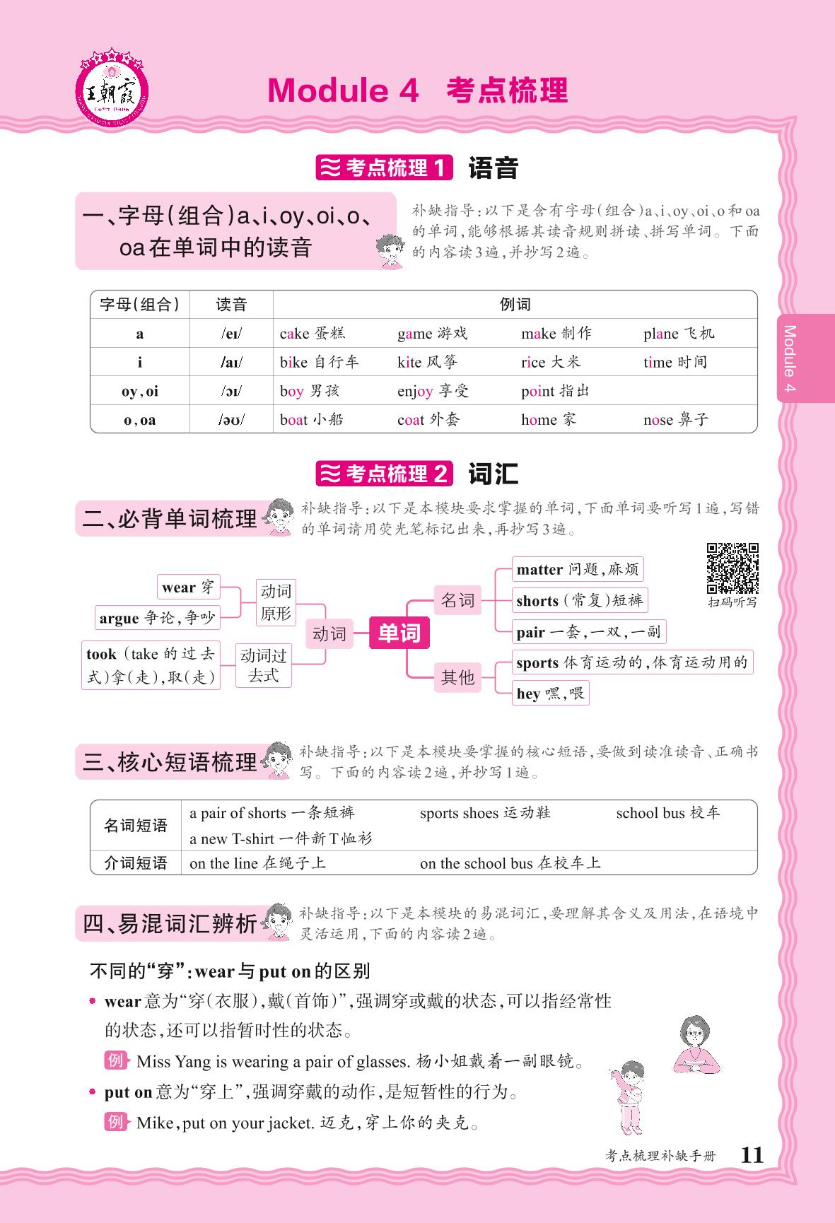 2024秋上册五年级英语外研版(三起始) 考点梳理补缺手册——Module 4