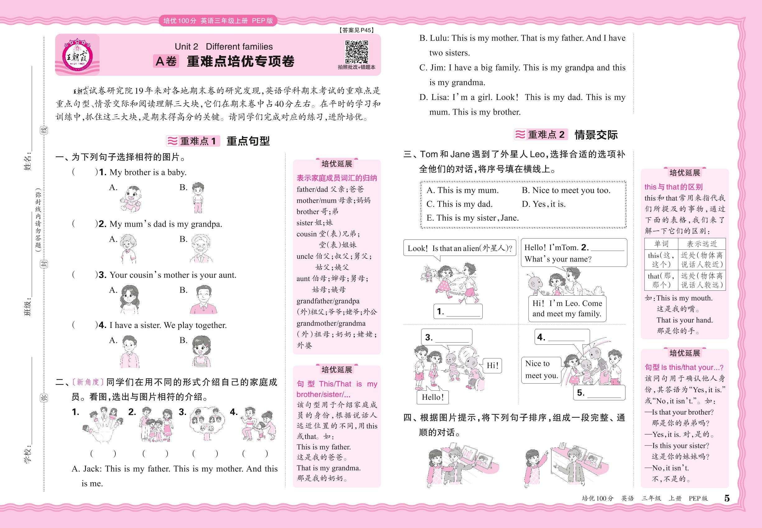 2024秋上册三年级英语人教PEP版(三起始) Unit 2 A卷 重难点培优专项卷