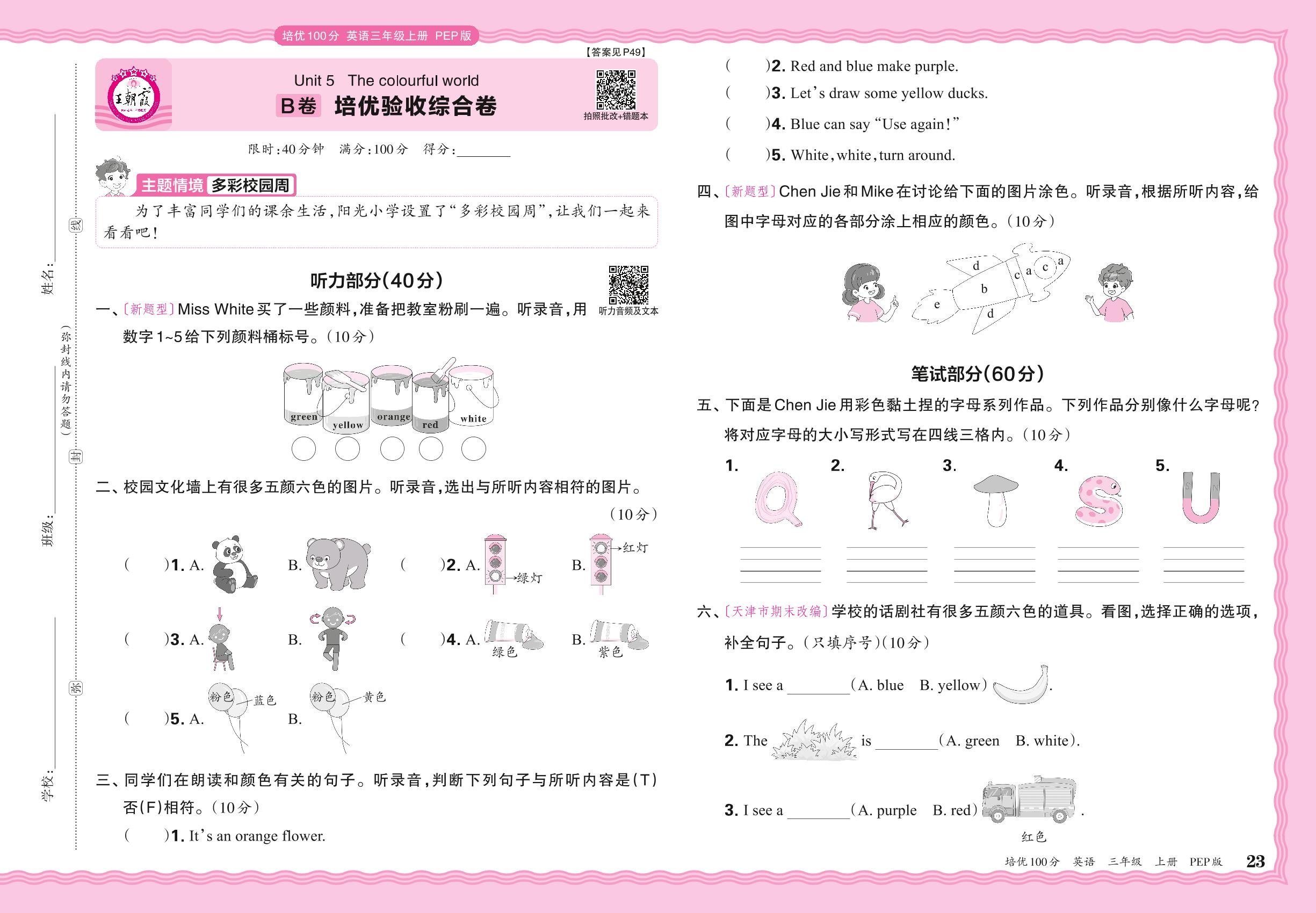 2024秋上册三年级英语人教PEP版(三起始) Unit 5 B卷 培优验收综合卷