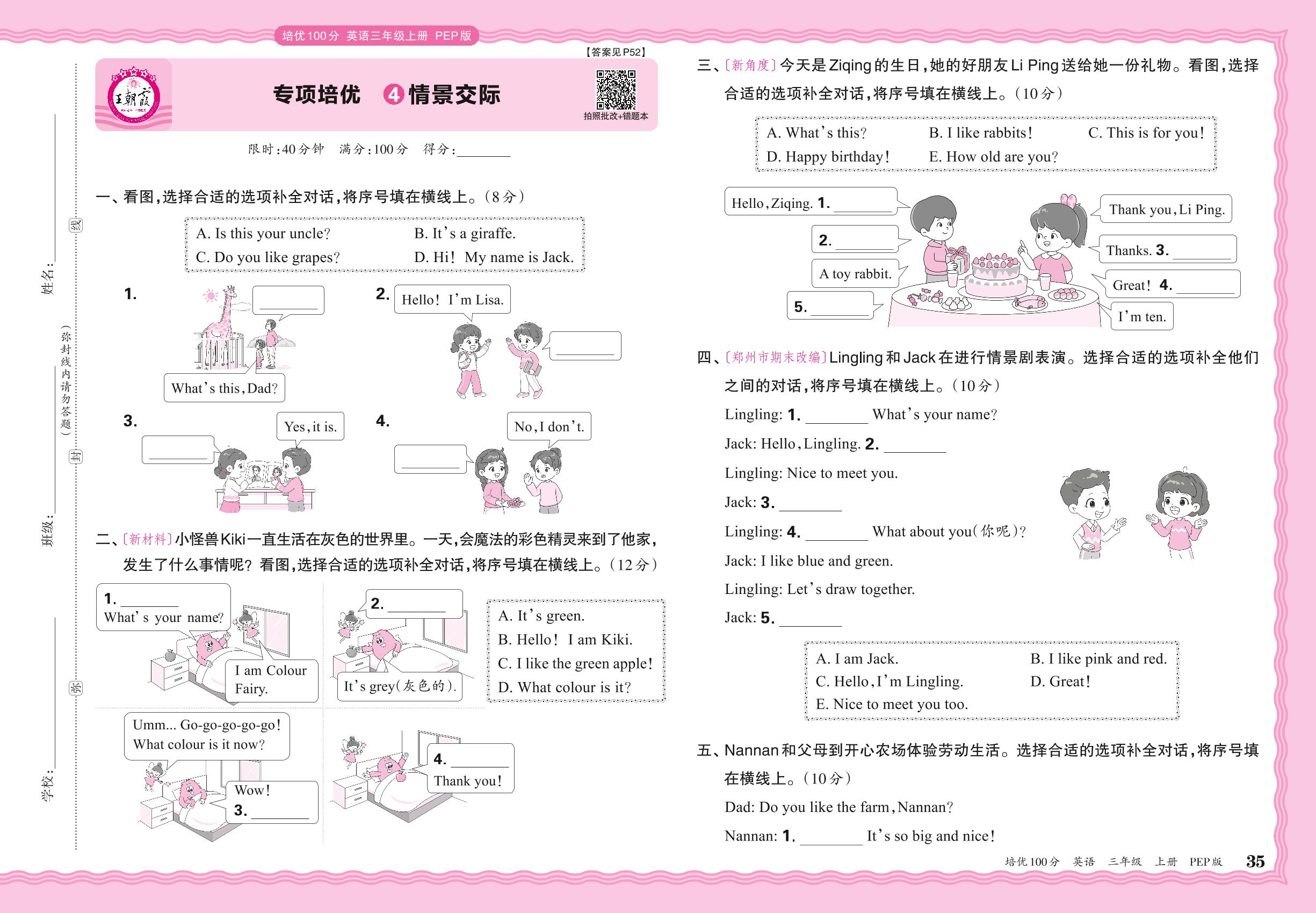 2024秋上册三年级英语人教PEP版(三起始) 期末专项卷PY版·情景交际【4】