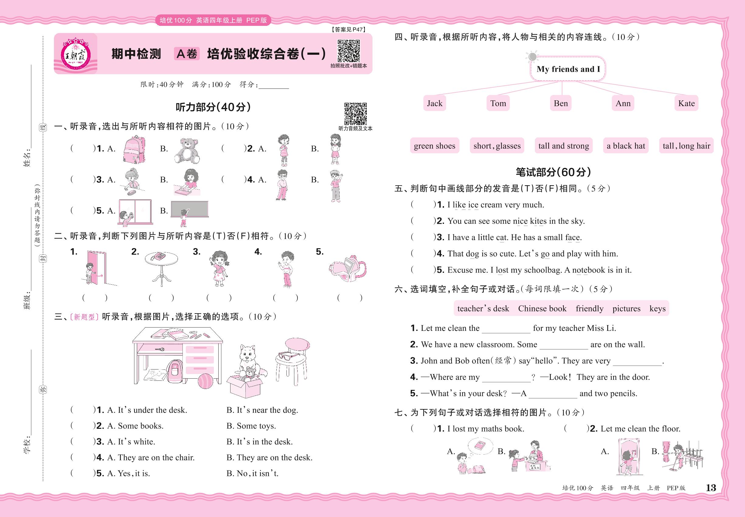 2024秋上册四年级英语人教PEP版(三起始) 期中检测A卷 培优验收综合卷(一)