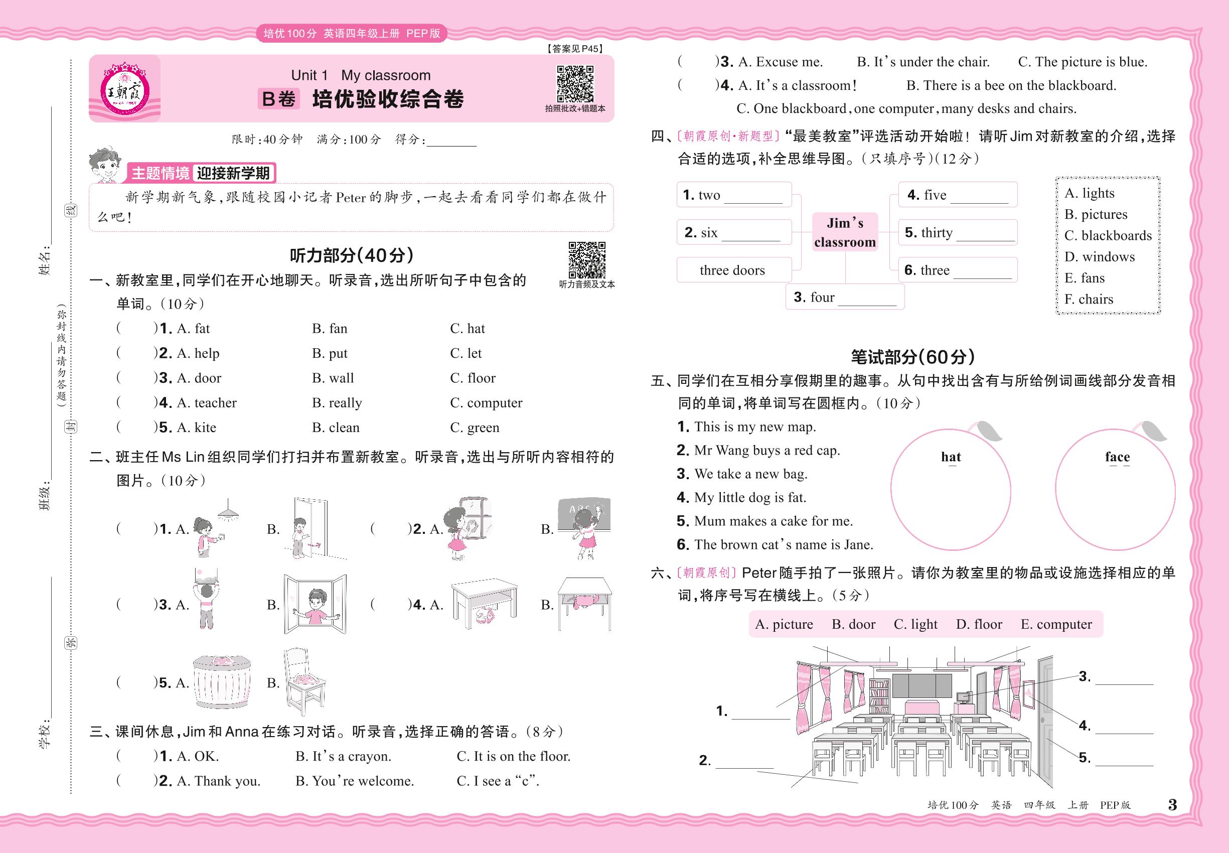 2024秋上册四年级英语人教PEP版(三起始) Unit 1 B卷 培优验收综合卷