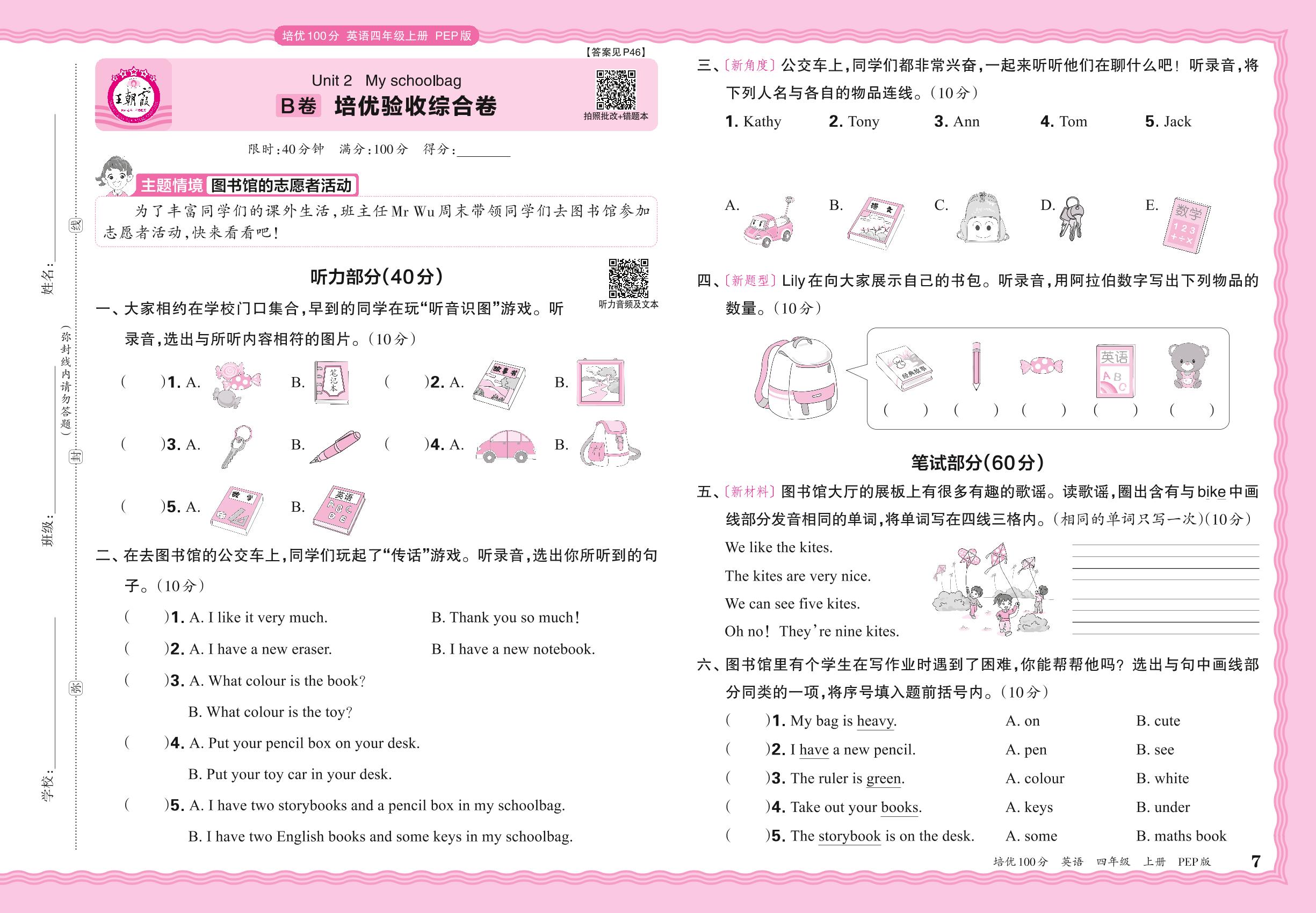 2024秋上册四年级英语人教PEP版(三起始) Unit 2 B卷 培优验收综合卷