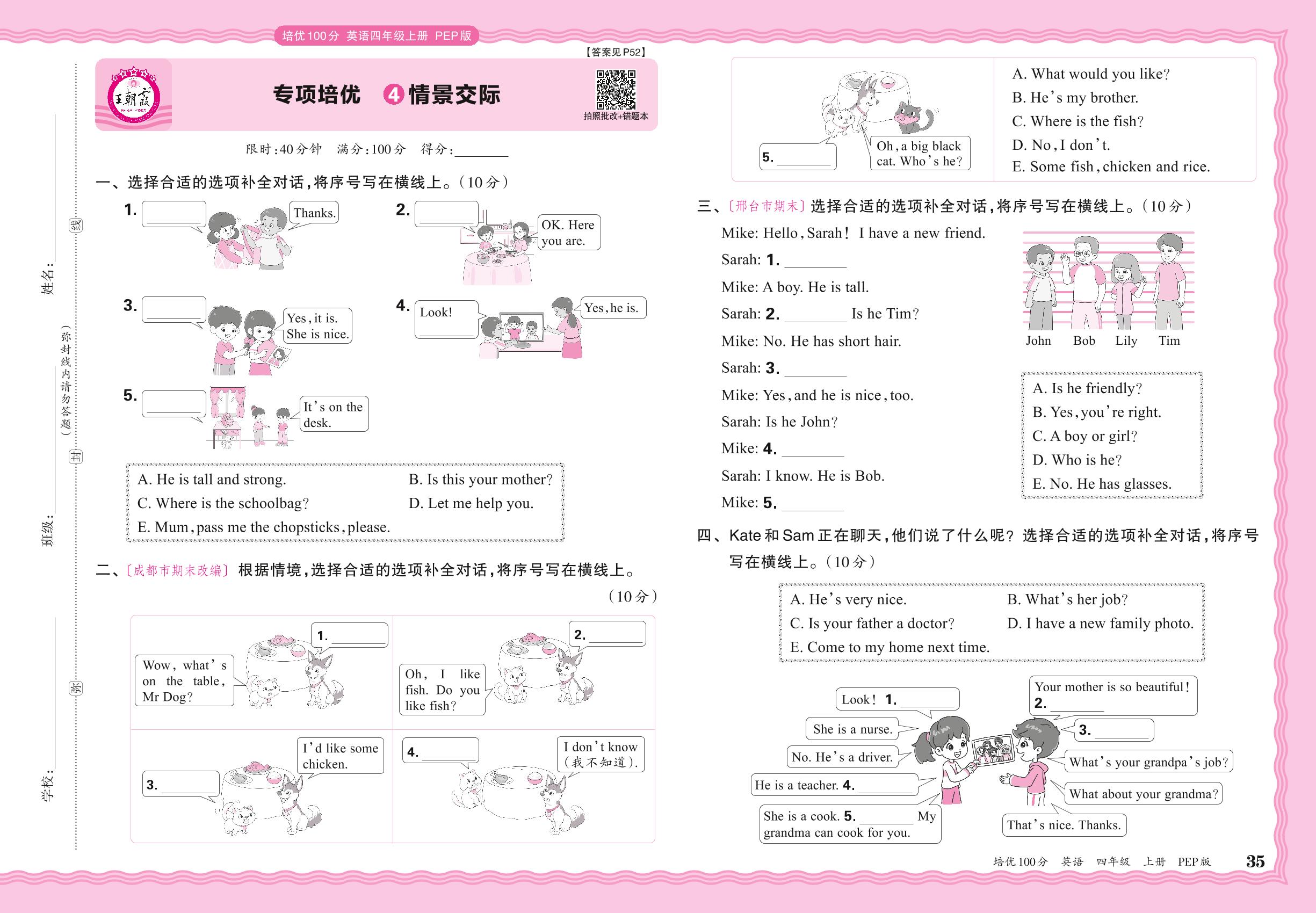2024秋上册四年级英语人教PEP版(三起始) 期末专项卷PY版·情景交际【4】