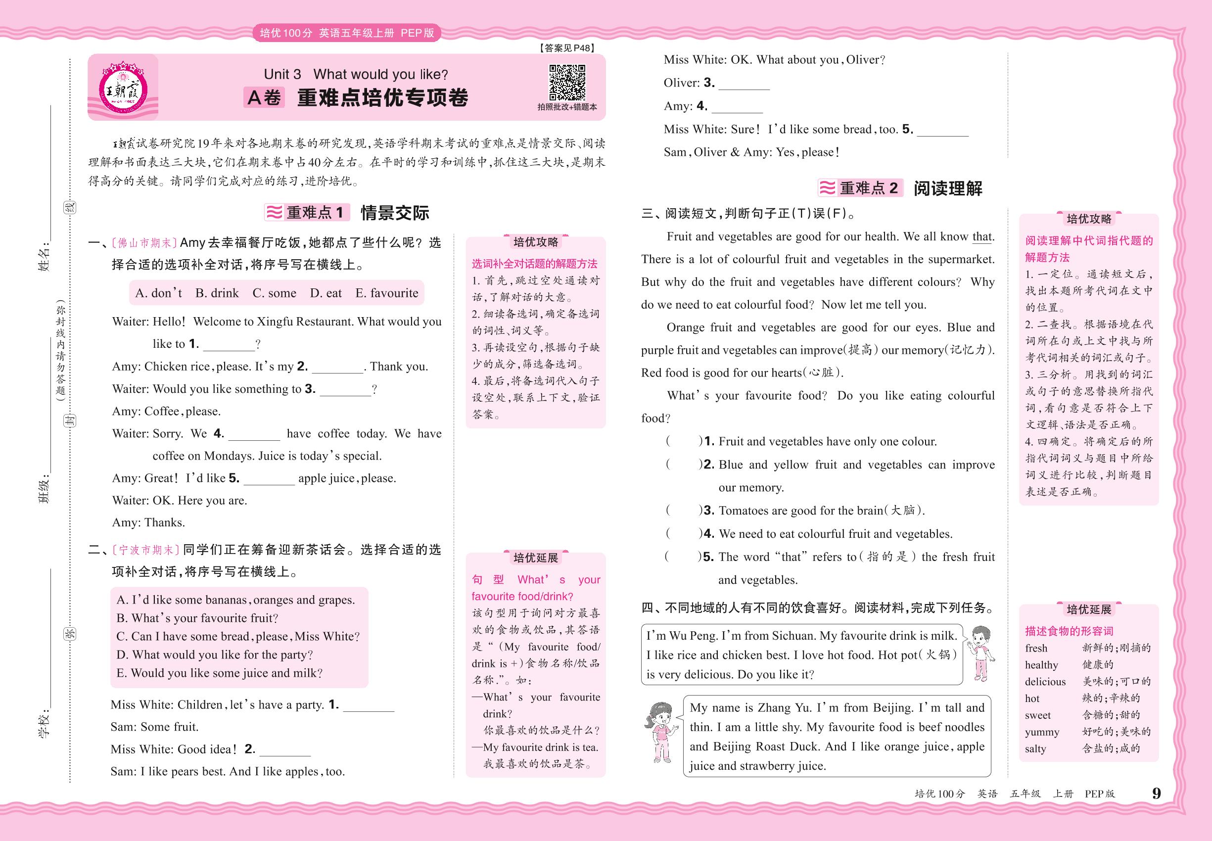 2024秋上册五年级英语人教PEP版(三起始) Unit 3 A卷 重难点培优专项卷