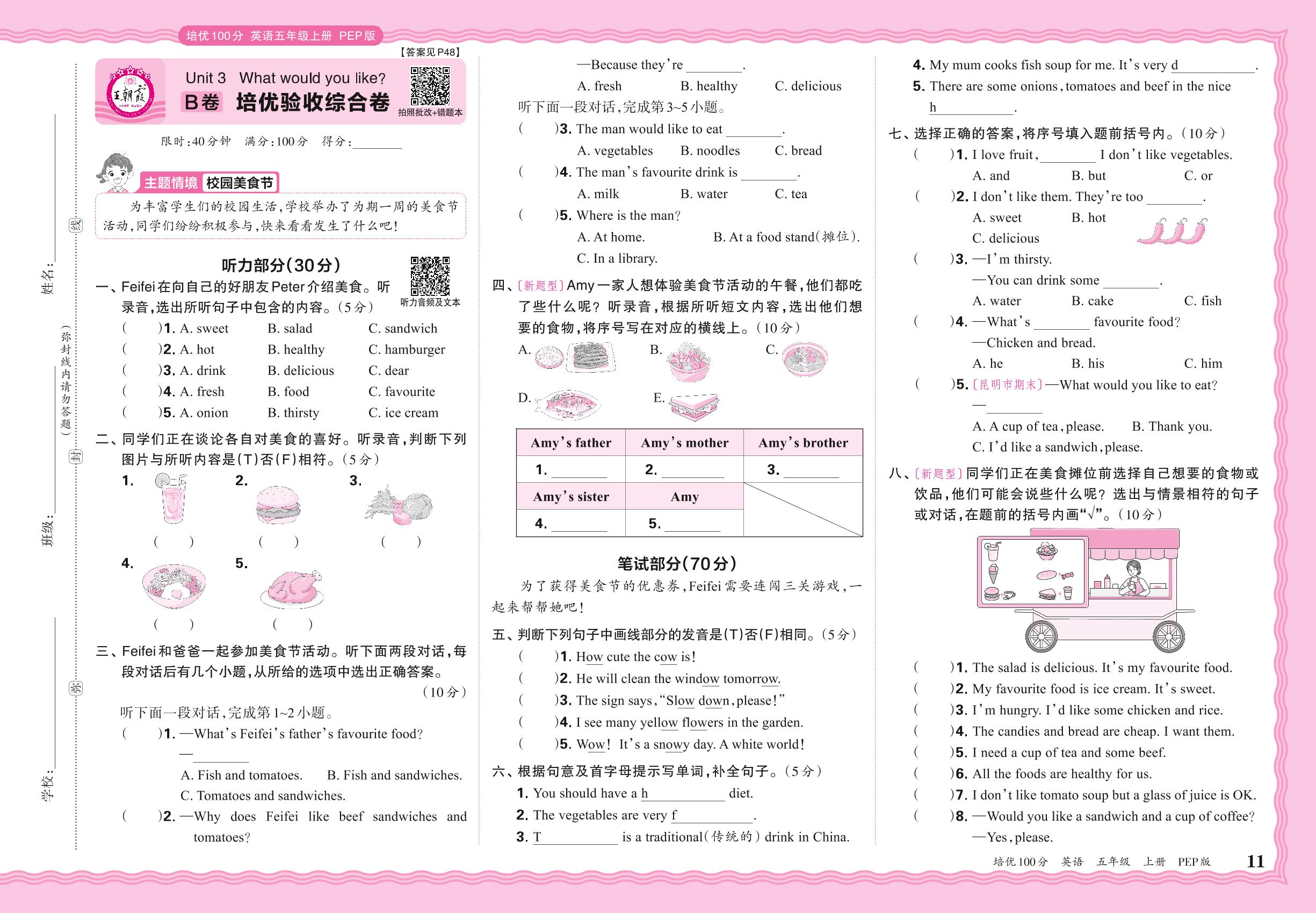 2024秋上册五年级英语人教PEP版(三起始) Unit 3 B卷 培优验收综合卷