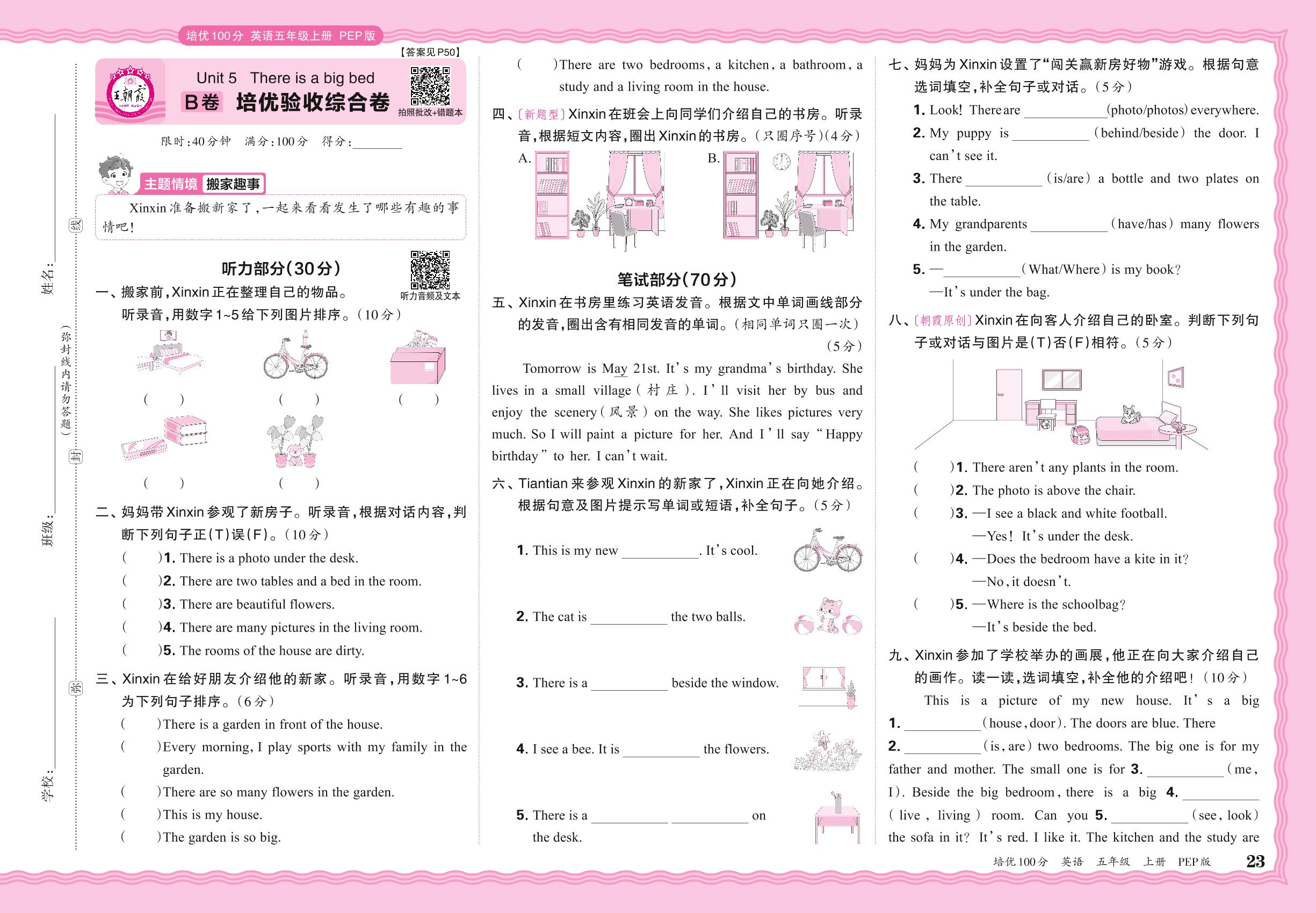 2024秋上册五年级英语人教PEP版(三起始) Unit 5 B卷 培优验收综合卷
