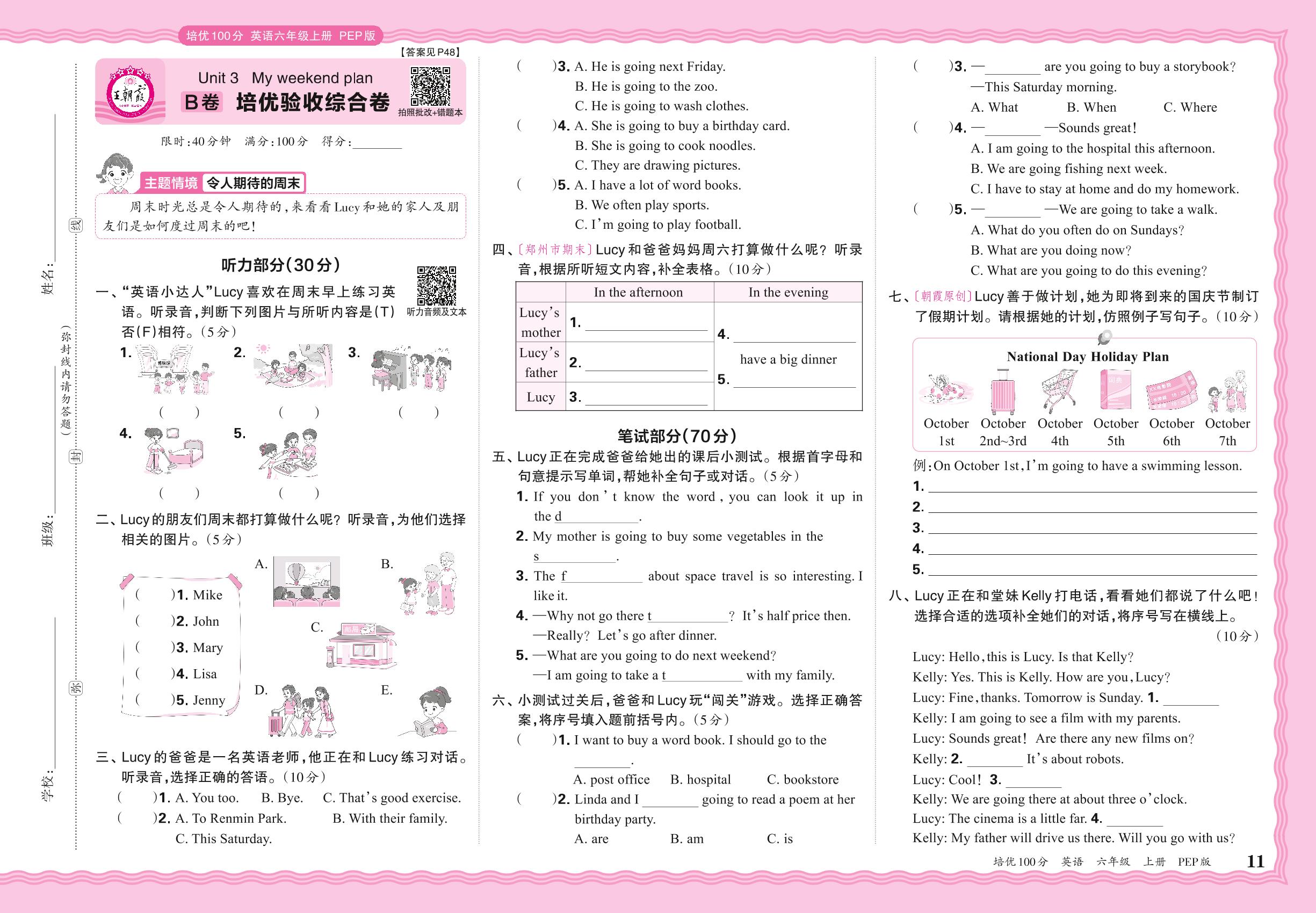 2024秋上册六年级英语人教PEP版(三起始) Unit 3 B卷 培优验收综合卷