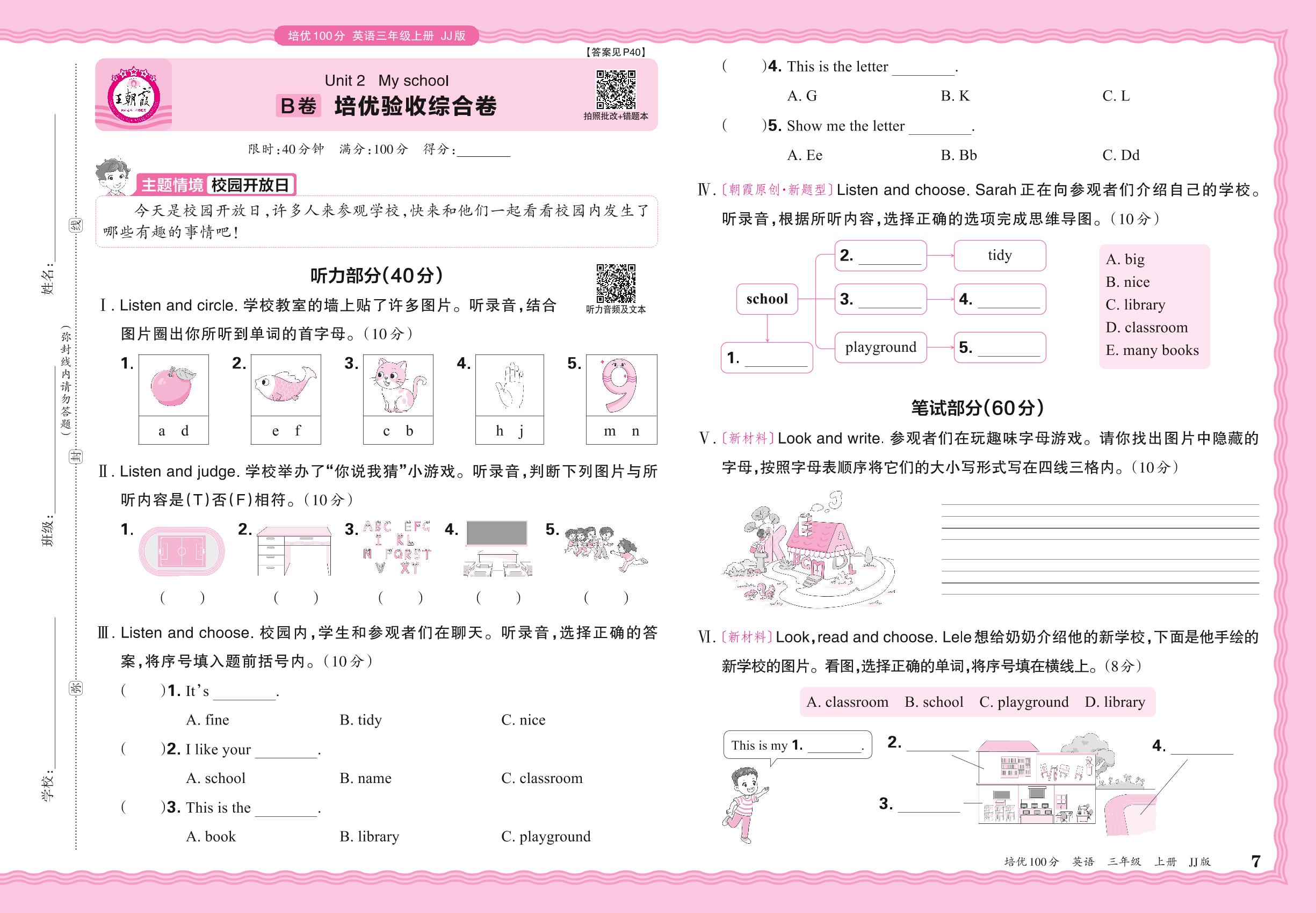 三年级英语冀教版(2024)上册单元卷