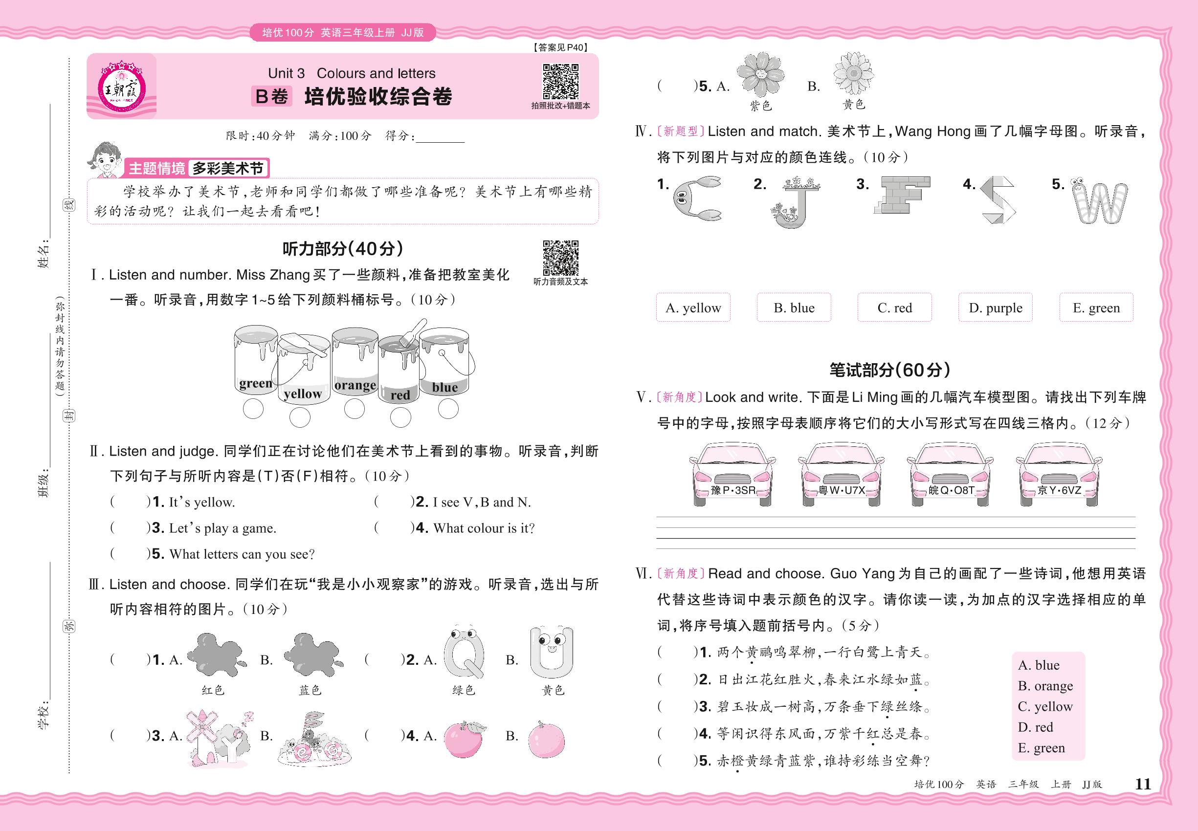 2024秋上册三年级英语冀教版 Unit 3 B卷 培优验收综合卷