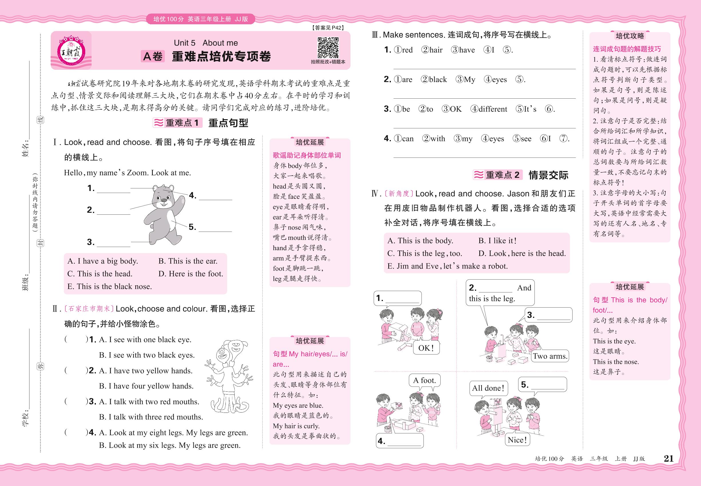 2024秋上册三年级英语冀教版 Unit 5 A卷 重难点培优专项卷