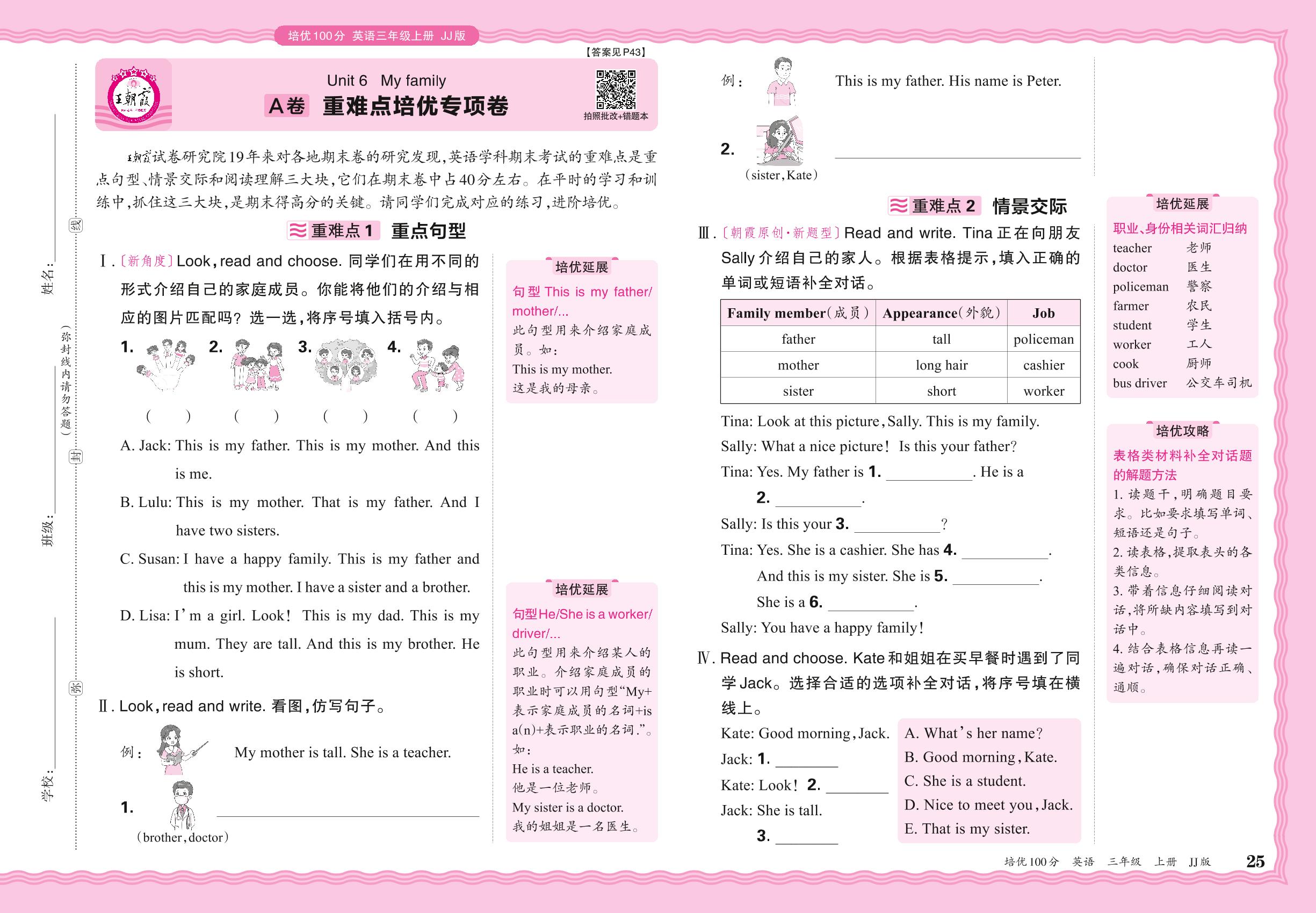 2024秋上册三年级英语冀教版 Unit 6 A卷 重难点培优专项卷