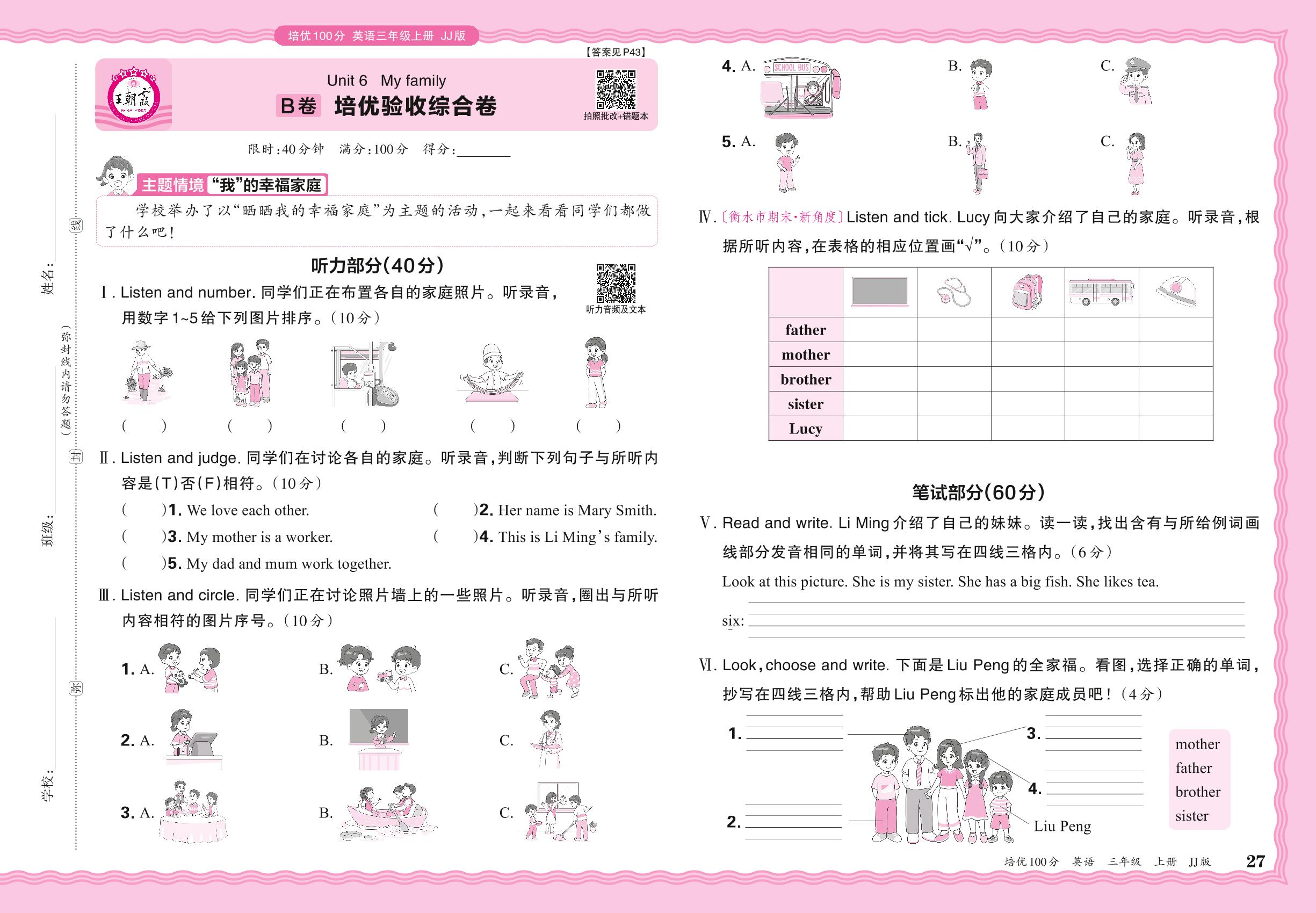2024秋上册三年级英语冀教版 Unit 6 B卷 培优验收综合卷